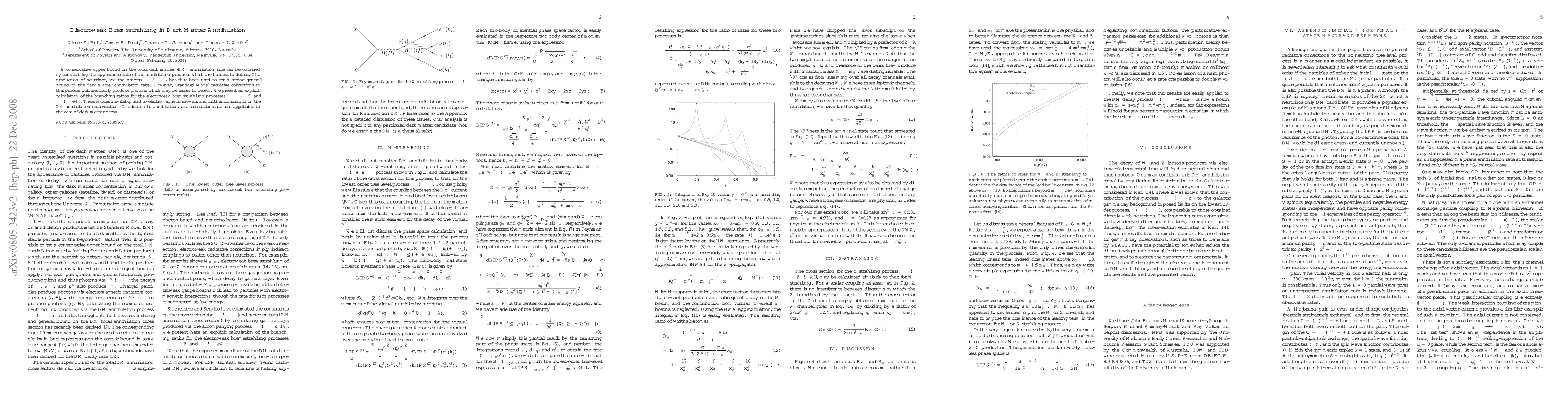 Detailed calculation and presentation of branching ratios for electroweak bremsstrahlung processes in dark matter annihilation and decay.