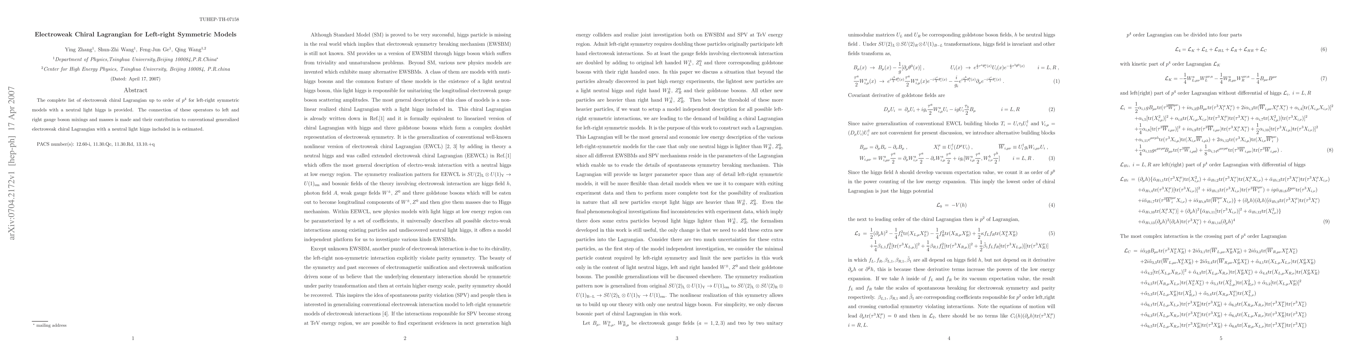 The complete list of electroweak chiral Lagrangian up to order of p4 for left-right symmetric models with a neutral light higgs is provided. The connection of these operators to left and right gauge boson mixings and masses is made and their contribution to conventional generalized electroweak chiral Lagrangian with a neutral light higgs included in is estimated.