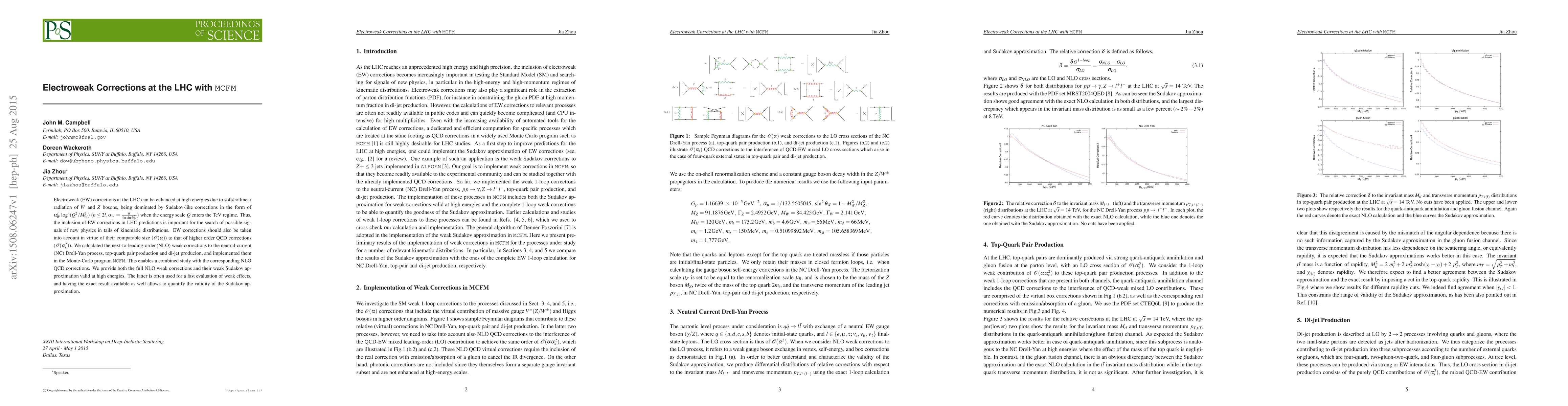Electroweak (EW) corrections at the LHC can be enhanced at high energies due to soft/collinear radiation of W and Z bosons, being dominated by Sudakov-like corrections in the form of $\alpha_W^l\log^n(Q^2/M_W^2)$ $(n \le 2l, \alpha_W = \alpha/(4\pi\sin\theta_W^2))$ when the energy scale $Q$ enters the TeV regime. Thus, the inclusion of EW corrections in LHC predictions is important for the search of possible signals of new physics in tails of kinematic distributions. EW corrections should also be taken into account in virtue of their comparable size ($\mathcal{O}(\alpha)$) to that of higher order QCD corrections ($\mathcal{O}(\alpha_s^2)$). We calculated the next-to-leading-order (NLO) weak corrections to the neutral-current (NC) Drell-Yan process, top-quark pair production and di-jet producion, and implemented them in the Monte-Carlo program MCFM. This enables a combined study with the corresponding NLO QCD corrections. We provide both the full NLO weak corrections and their weak Sudakov approximation valid at high energies. The latter is often used for a fast evaluation of weak effects, and having the exact result available as well allows to quantify the validity of the Sudakov approximation.