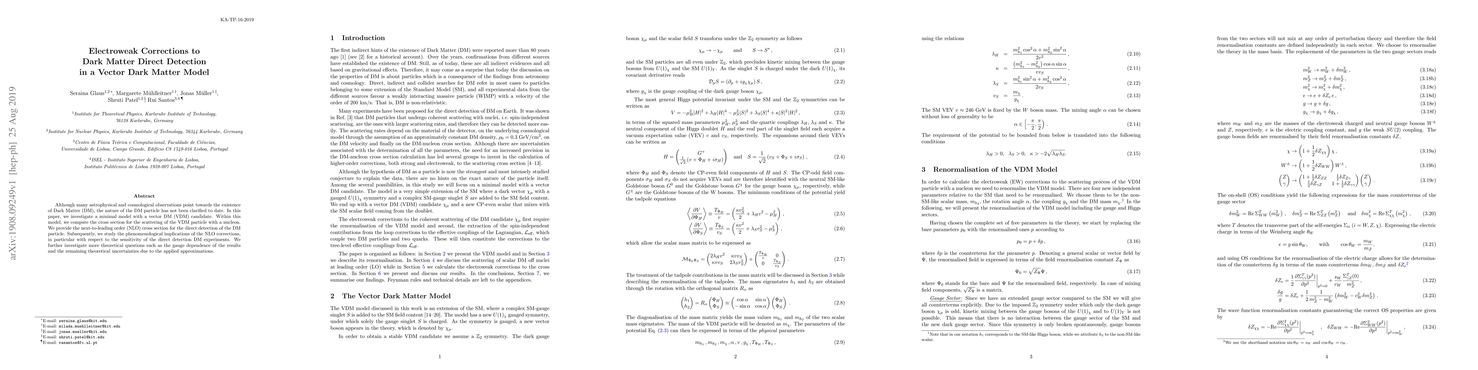 This paper examines a vector dark matter (VDM) model, calculating the next-to-leading order cross section for VDM scattering with nucleons. It analyzes the phenomenological implications of these corrections for direct detection experiments and explores theoretical uncertainties and gauge dependence.