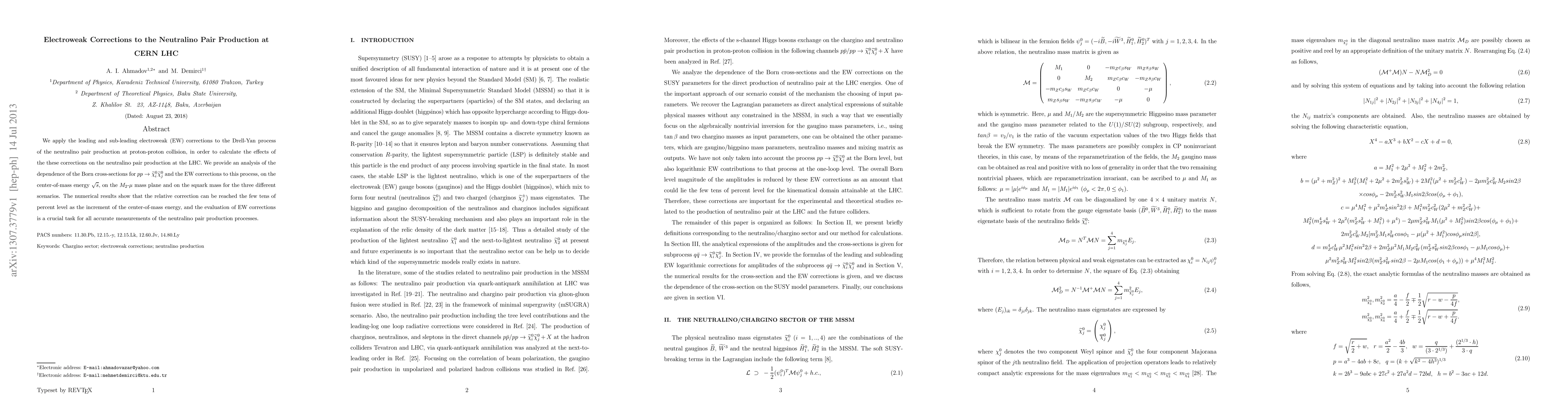 This paper investigates the impact of leading and sub-leading electroweak corrections on neutralino pair production via the Drell-Yan process at CERN LHC. It finds that these corrections can reach tens of percent, emphasizing their importance for accurate measurements of neutralino pair production.