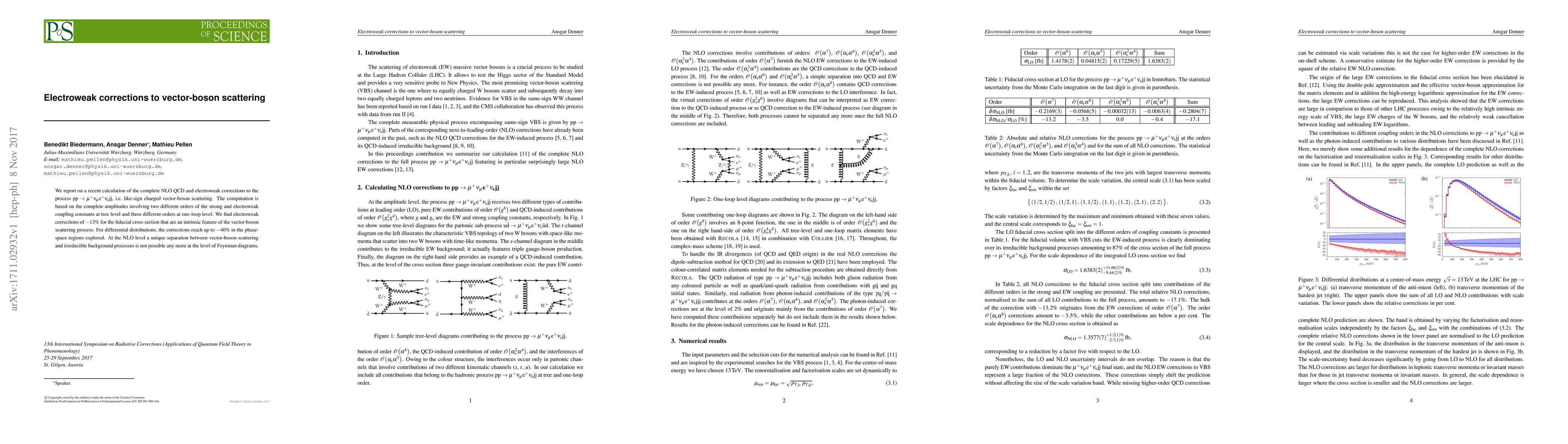 We report on a recent calculation of the complete NLO QCD and electroweak corrections to the process $pp\to\mu^+\nu_\mu e^+\nu_ejj$, i.e. like-sign charged vector-boson scattering. The computation is based on the complete amplitudes involving two different orders of the strong and electroweak coupling constants at tree level and three different orders at one-loop level. We find electroweak corrections of $-13\%$ for the fiducial cross section that are an intrinsic feature of the vector-boson scattering process. For differential distributions, the corrections reach up to $-40\%$ in the phase-space regions explored. At the NLO level a unique separation between vector-boson scattering and irreducible background processes is not possible any more at the level of Feynman diagrams.