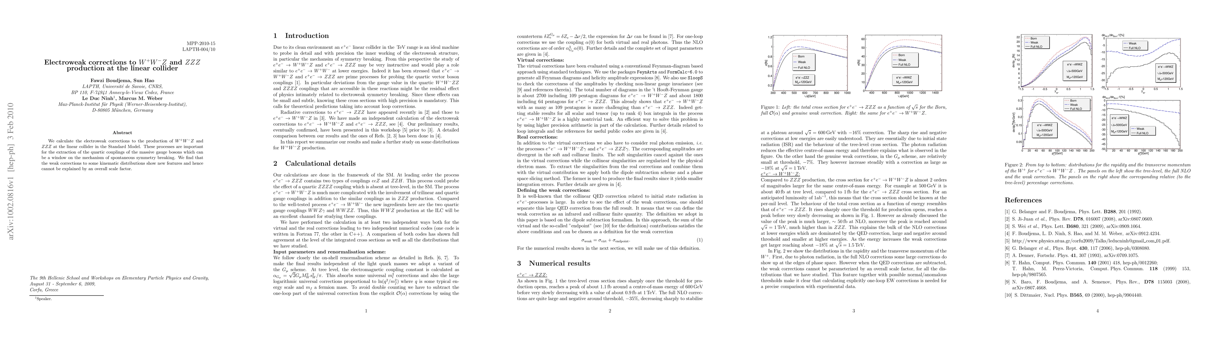 This paper calculates the electroweak corrections for WWZ and ZZZ production at a linear collider within the Standard Model, highlighting their significance for extracting quartic gauge boson couplings and exploring spontaneous symmetry breaking. The study reveals that weak corrections introduce new features in some kinematic distributions that cannot be simplified by a single scale factor.