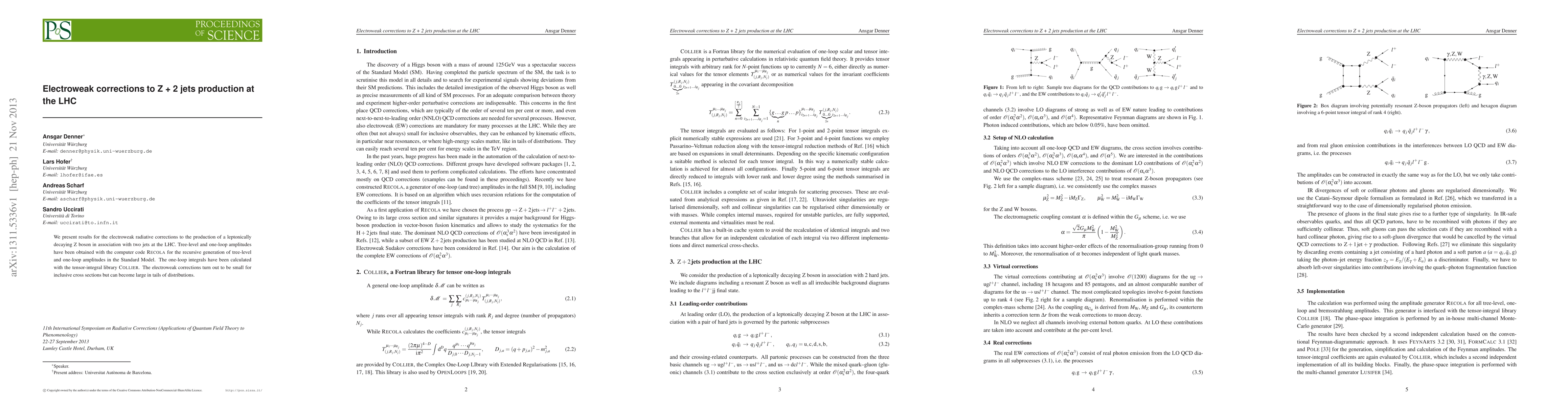 This paper presents electroweak radiative corrections for Z boson plus two jets production at the LHC, calculated using Recola and Collier software. While the corrections are minor for inclusive cross sections, they can significantly affect the tails of distributions.