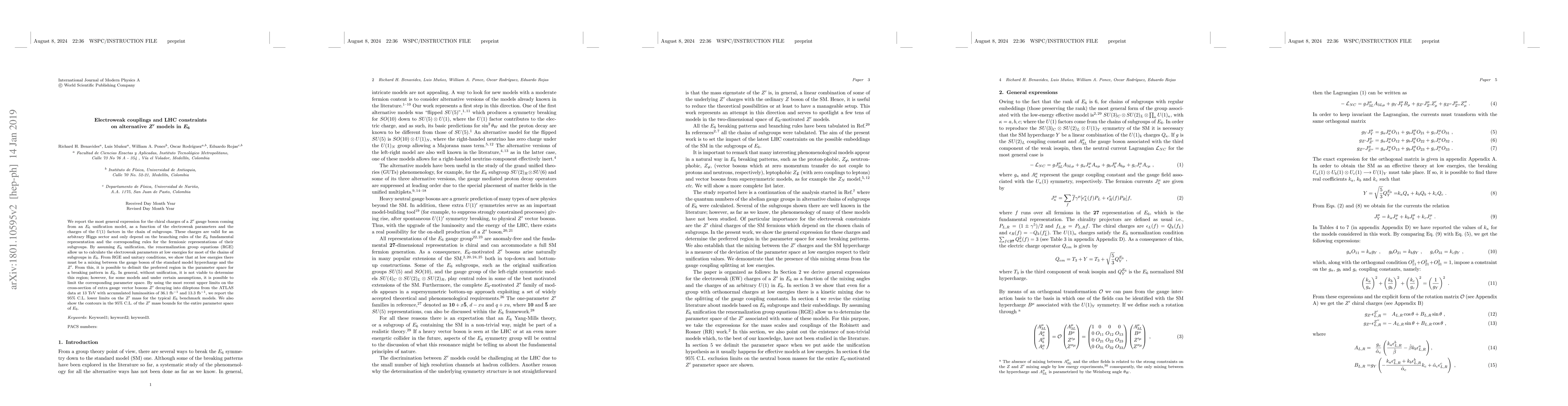 We report the most general expression for the chiral charges of a $Z'$ gauge boson coming from an $E_6$ unification model, as a function of the electroweak parameters and the charges of the $U(1)$ factors in the chain of subgroups. These charges are valid for an arbitrary Higgs sector and only depend on the branching rules of the $E_6$ fundamental representation and the corresponding rules for the fermionic representations of their subgroups. By assuming $E_6$ unification, the renormalization group equations~(RGE) allow us to calculate the electroweak parameters at low energies for most of the chains of subgroups in $E_6$. From RGE and unitary conditions, we show that at low energies there must be a mixing between the gauge boson of the standard model hypercharge and the $Z'$. From this, it is possible to delimit the preferred region in the parameter space for a breaking pattern in $E_6$. In general, without unification, it is not viable to determine this region; however, for some models and under certain assumptions, it is possible to limit the corresponding parameter space. By using the most recent upper limits on the cross-section of extra gauge vector bosons $Z'$ decaying into dileptons from the ATLAS data at 13~TeV with accumulated luminosities of 36.1~fb$^{-1}$ and 13.3~fb$^{-1}$, we report the 95$\%$ C.L. lower limits on the $Z'$ mass for the typical $E_6$ benchmark models. We also show the contours in the 95\% C.L. of the $Z'$ mass bounds for the entire parameter space of $E_6$.