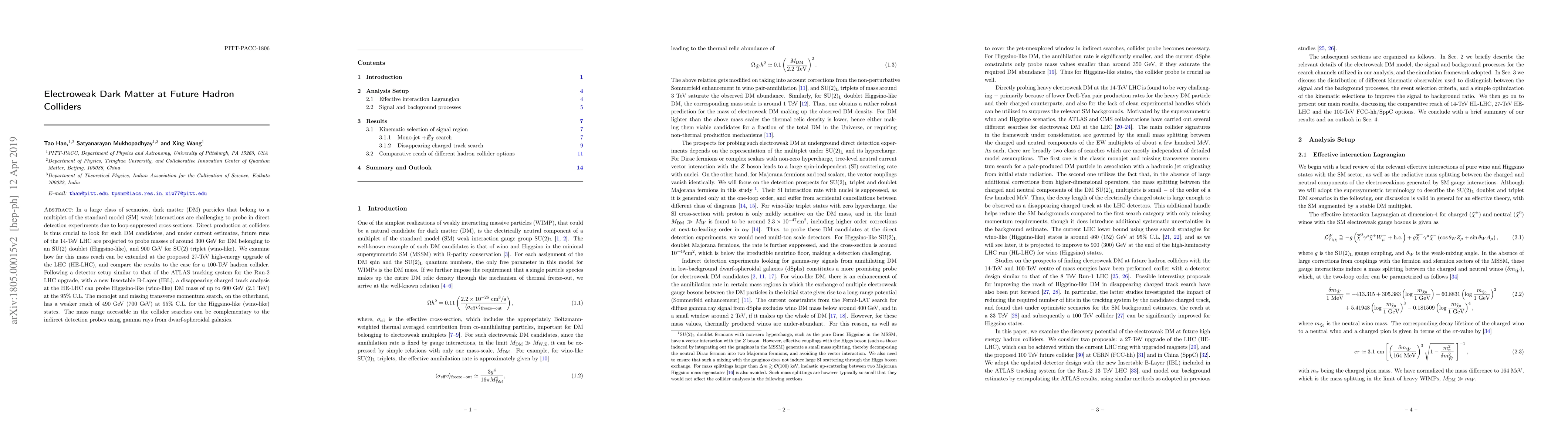 Future hadron colliders like the 27-TeV HE-LHC may be able to probe Higgsino-like DM masses of up to 600 GeV, complementing indirect detection probes.