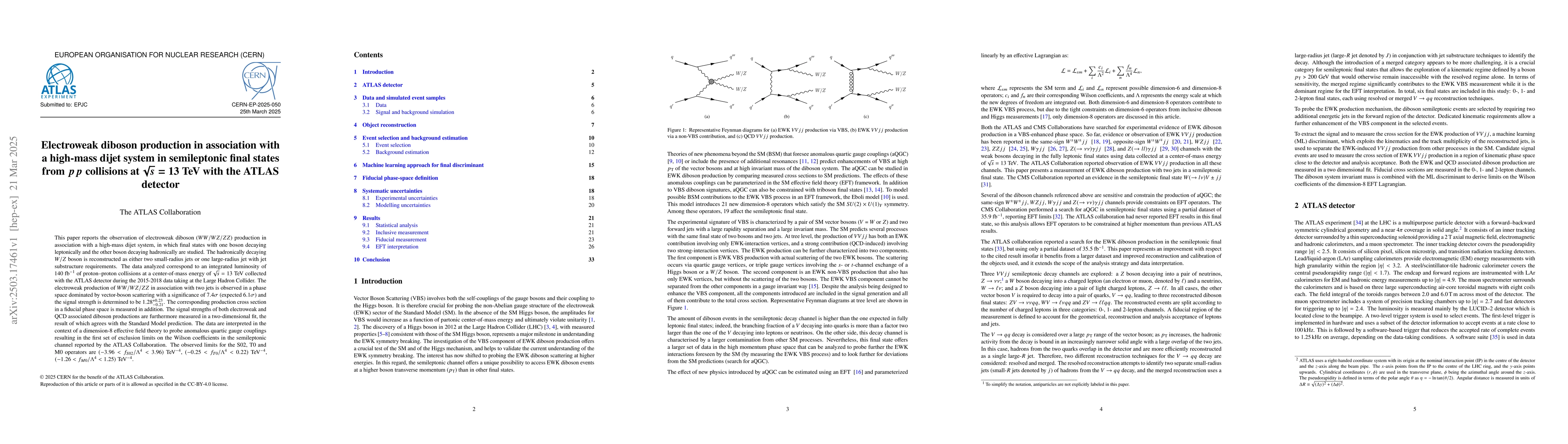 This work distinguishes itself by combining high-precision measurements of electroweak diboson production with a high-mass dijet system, providing the first set of exclusion limits on dimension-8 effective field theory operators in the semileptonic channel.