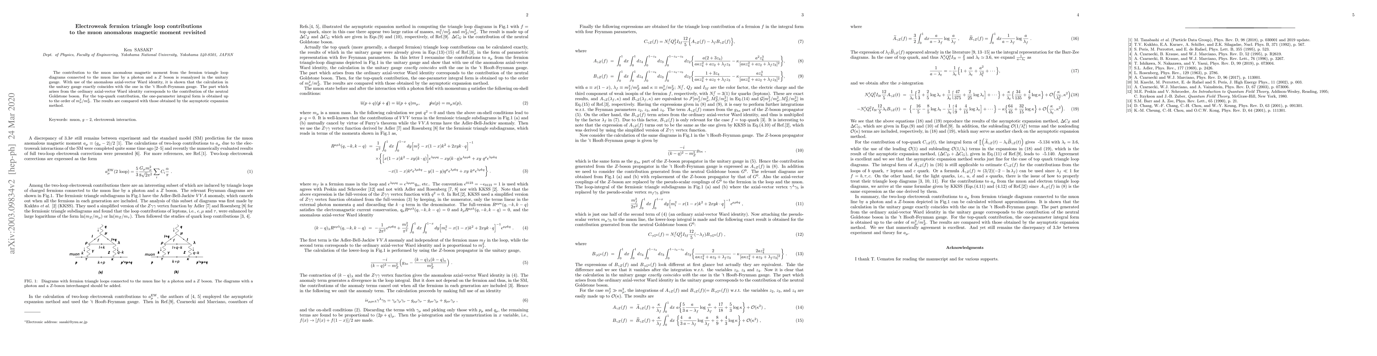 This paper reanalyzes the electroweak fermion triangle loop contributions to the muon anomalous magnetic moment in the unitary gauge, showing it matches the 't Hooft-Feynman gauge calculation. The study also derives the one-parameter integral form for the top-quark contribution and compares results with the asymptotic expansion method.