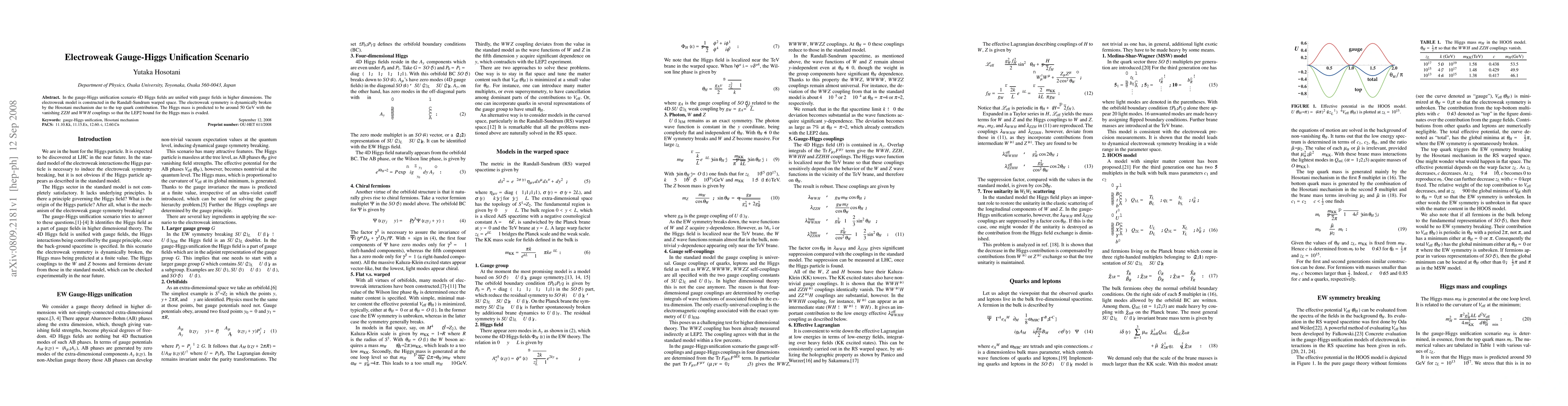This paper explores a gauge-Higgs unification scenario where 4D Higgs fields are integrated with gauge fields in higher dimensions within a Randall-Sundrum warped space. The electroweak symmetry is dynamically broken via the Hosotani mechanism, predicting a Higgs mass around 50 GeV while avoiding LEP2 bounds through vanishing ZZH and WWH couplings.