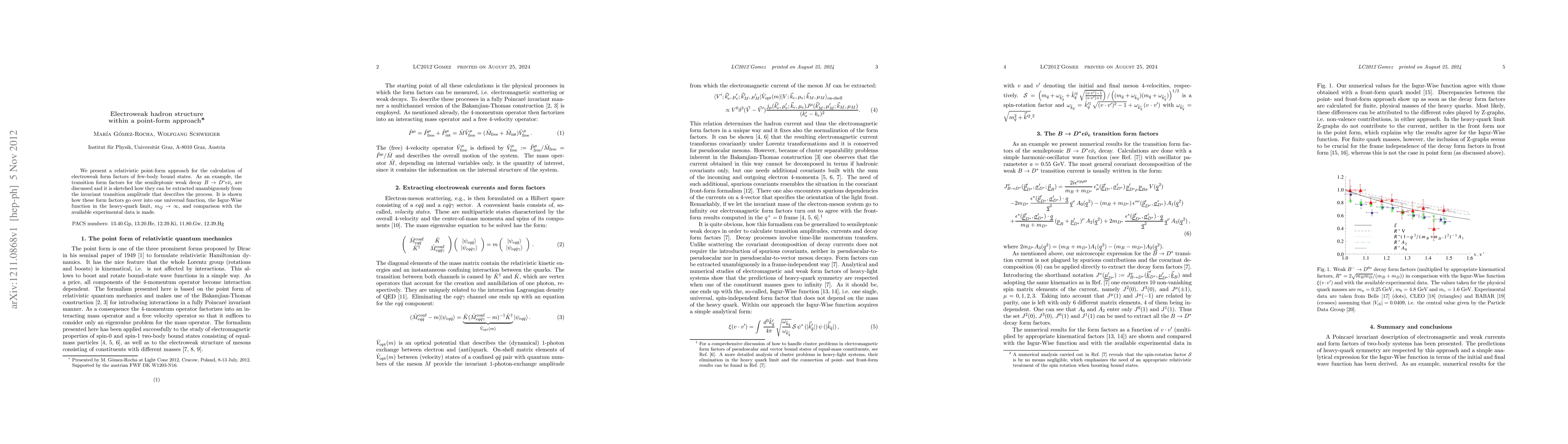 We present a relativistic point-form approach for the calculation of electroweak form factors of few-body bound states. As an example, the transition form factors for the semileptonic weak decay $B\to D^*e\bar \nu_e$ are discussed and it is sketched how they can be extracted unambiguously from the invariant transition amplitude that describes the process. It is shown how these form factors go over into one universal function, the Isgur-Wise function in the heavy-quark limit, $m_Q\to \infty$, and comparison with the available experimental data is made.
