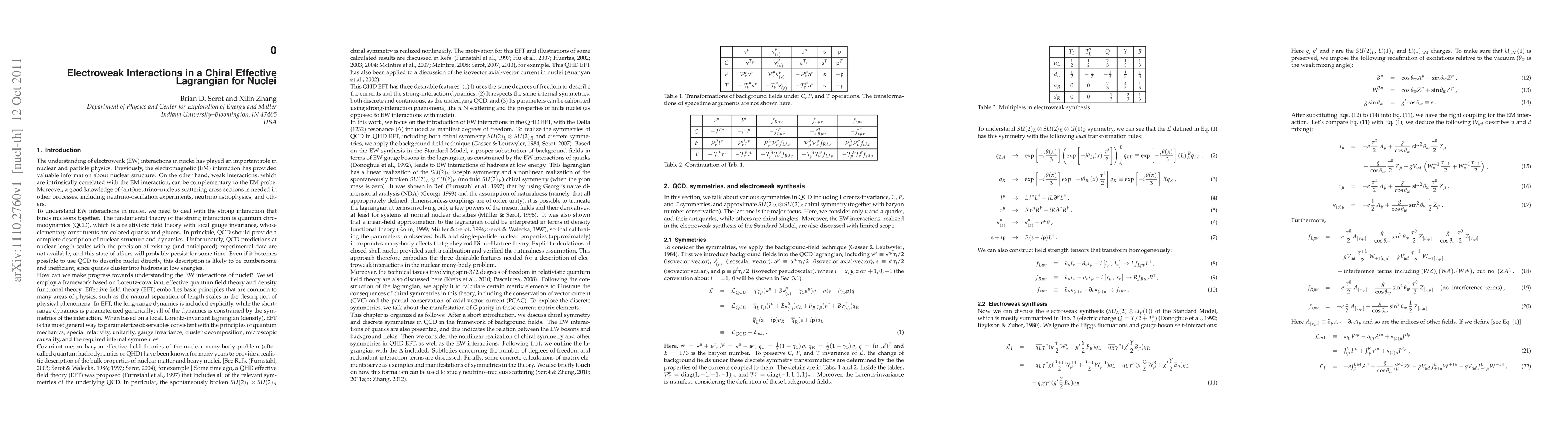 This paper explores electroweak interactions within a chiral effective Lagrangian for quantum hadrodynamics (QHD) using an EFT framework. It incorporates nucleon, pion, $\Delta$, and vector fields, and discusses the nonlinear realization of chiral symmetry and vector meson dominance, while addressing the breaking of symmetries due to quark masses and weak interactions. The study also includes the $\Delta$ resonance and its relevance in the effective theory, calibrated for strong-interaction phenomena, with applications to (anti)neutrino scattering.