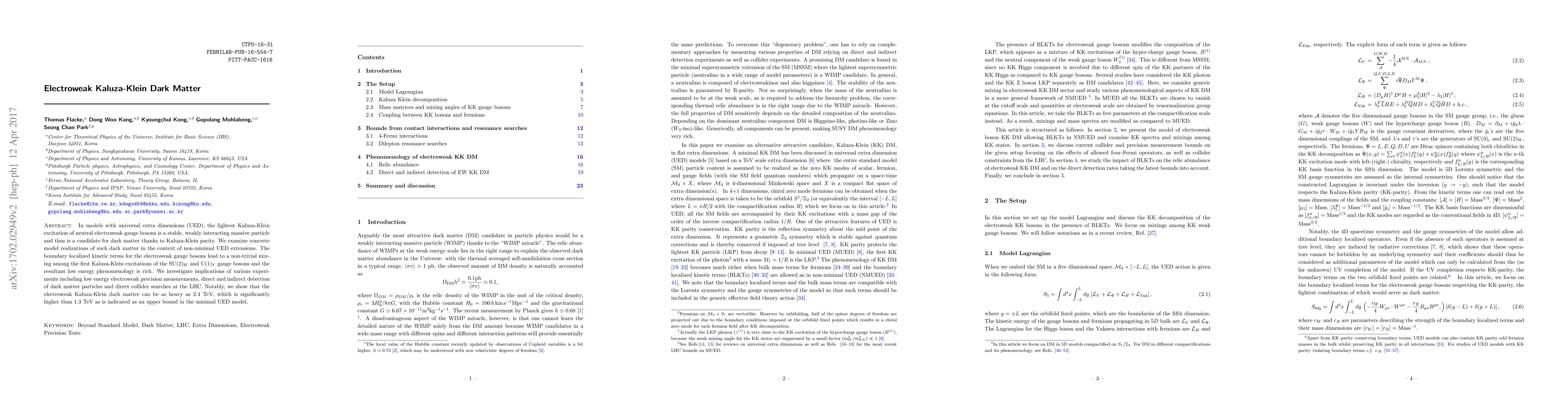 In models with universal extra dimensions (UED), the lightest Kaluza-Klein excitation of neutral electroweak gauge bosons is a stable, weakly interacting massive particle and thus is a candidate for dark matter thanks to Kaluza-Klein parity. We examine concrete model realizations of such dark matter in the context of non-minimal UED extensions. The boundary localized kinetic terms for the electroweak gauge bosons lead to a non-trivial mixing among the first Kaluza-Klein excitations of the ${\rm SU}(2)_W$ and ${\rm U}(1)_Y$ gauge bosons and the resultant low energy phenomenology is rich. We investigate implications of various experiments including low energy electroweak precision measurements, direct and indirect detection of dark matter particles and direct collider searches at the LHC. Notably, we show that the electroweak Kaluza-Klein dark matter can be as heavy as 2.4 TeV, which is significantly higher than $1.3$ TeV as is indicated as an upper bound in the minimal UED model.