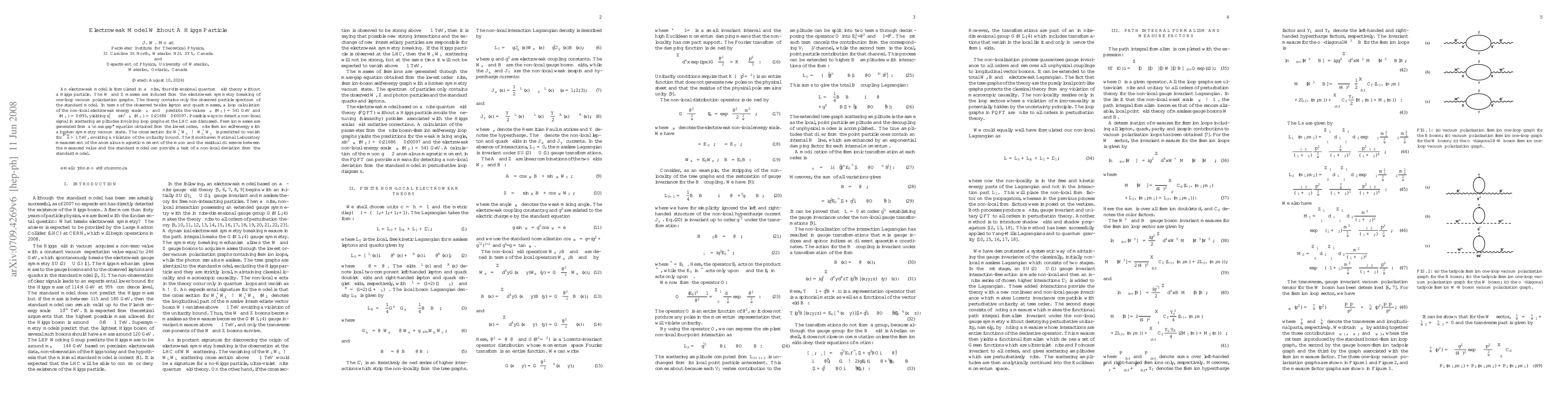An electroweak model is formulated in a finite, four-dimensional quantum field theory without a Higgs particle. The W and Z masses are induced from the electroweak symmetry breaking of one-loop vacuum polarization graphs. The theory contains only the observed particle spectrum of the standard model. In terms of the observed twelve lepton and quark masses, a loop calculation of the non-local electroweak energy scale $\Lambda_W$ and $\rho$ predicts the values $\Lambda_W(M_Z)=541$ GeV and $\rho(M_Z)=0.993$, yielding $s^2_Z\equiv\sin^2\theta_W(M_Z)=0.21686\pm 0.00097$. Possible ways to detect a non-local signal in scattering amplitudes involving loop graphs at the LHC are discussed. Fermion masses are generated from a ``mass gap'' equation obtained from the lowest order, finite fermion self-energy with a broken symmetry vacuum state. The cross section for $W_L^+ W_L^-\to W_L^+ W_L^-$ is predicted to vanish for $\sqrt{s} > {1 \rm TeV}$, avoiding a violation of the unitarity bound. The Brookhaven National Laboratory measurement of the anomalous magnetic moment of the muon and the residual difference between the measured value and the standard model can provide a test of a non-local deviation from the standard model.