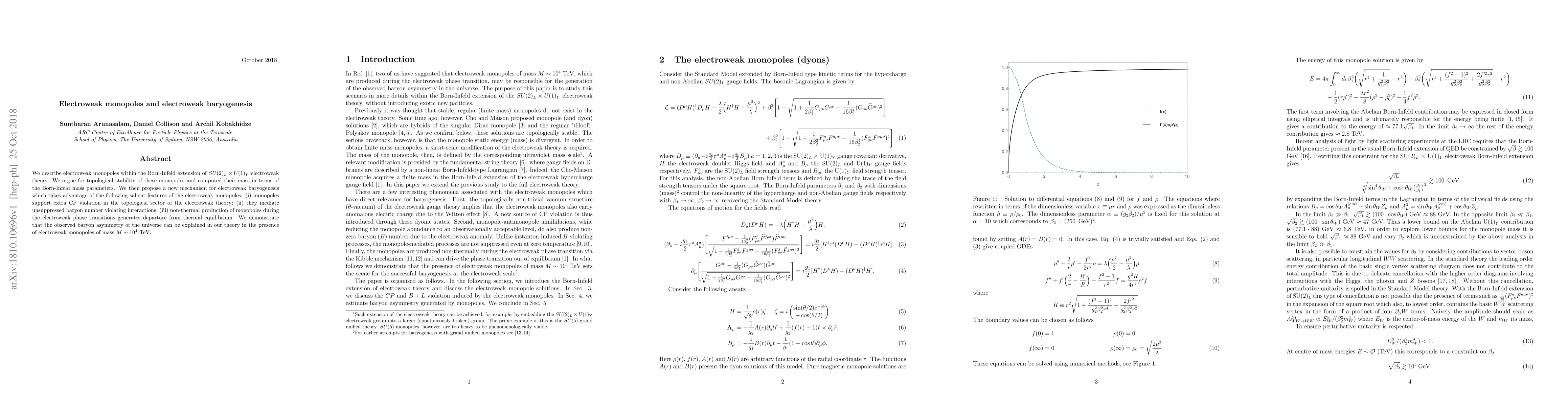 The paper presents a detailed analysis of electroweak monopoles in the Born-Infeld extended electroweak theory, demonstrating their topological stability and proposing a new baryogenesis mechanism based on their properties.