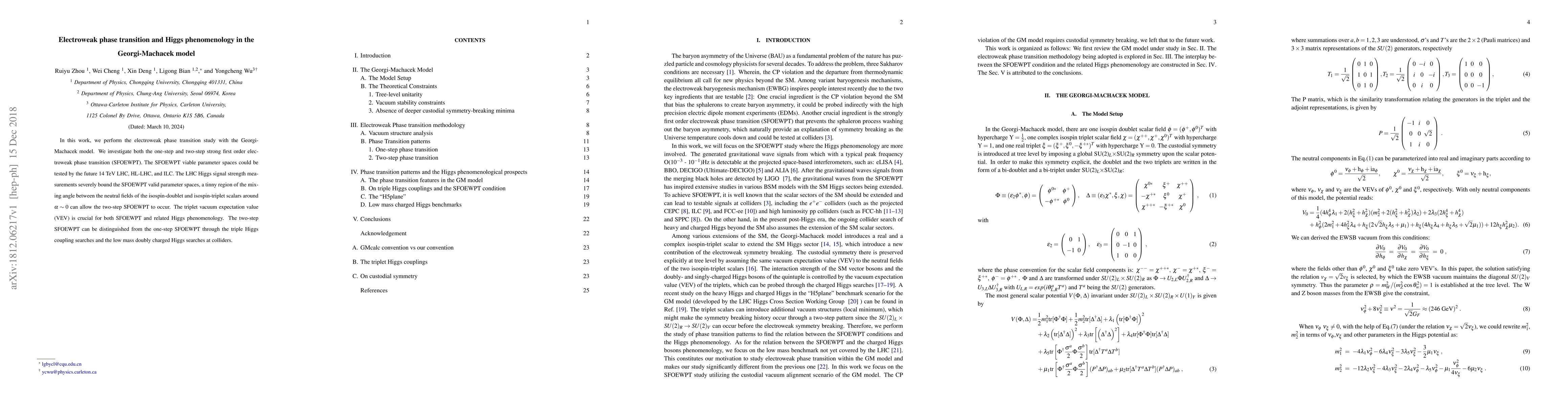 This paper explores the electroweak phase transition in the Georgi-Machacek model, focusing on both one-step and two-step strong first-order scenarios. Future colliders like the LHC and ILC could test these viable parameter spaces, with Higgs signal strength measurements narrowing the possible parameter regions.