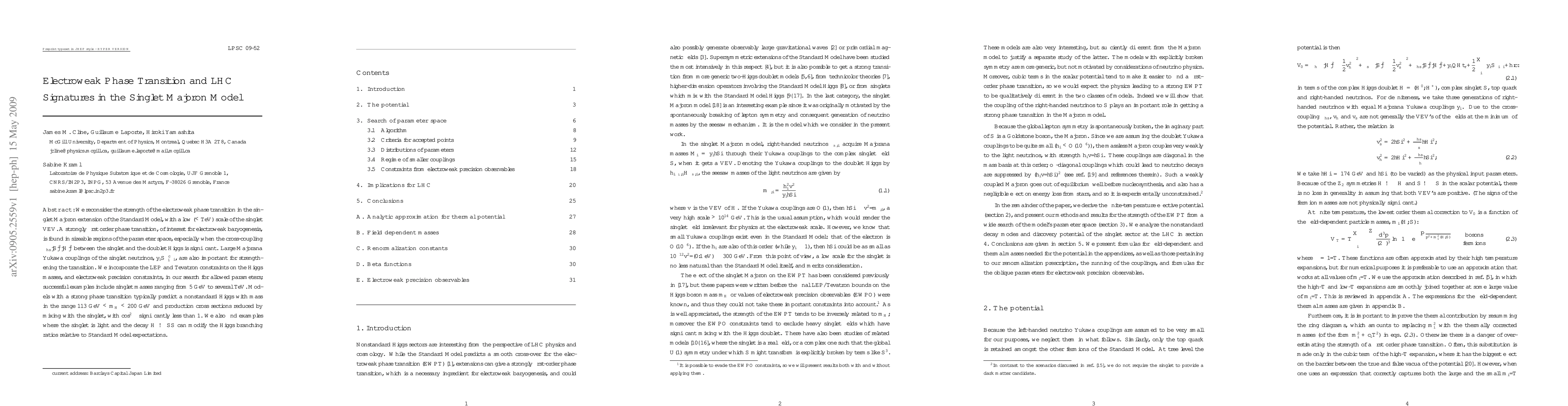 This paper explores the electroweak phase transition in the singlet Majoron model, finding that a strongly first-order transition is feasible with significant cross-coupling and large Majorana Yukawa couplings. Models predict a nonstandard Higgs with a mass range of 113 GeV to 200 GeV and altered production cross sections due to mixing with the singlet.