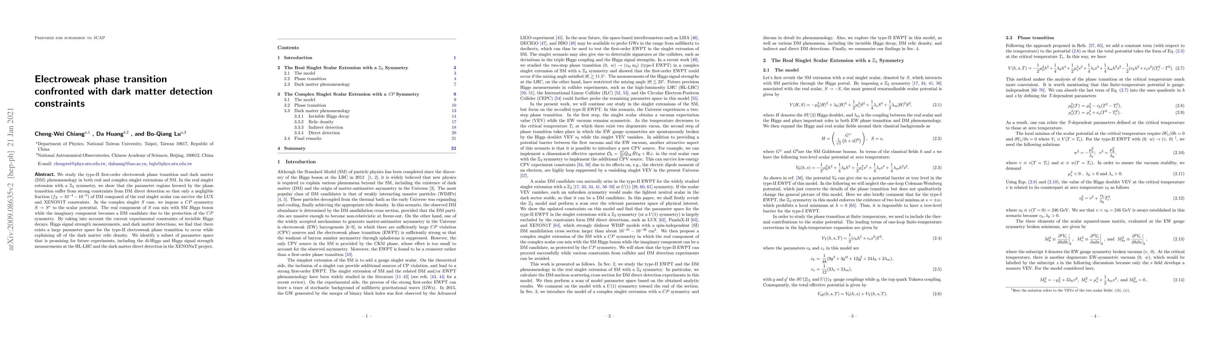 Researchers investigate how dark matter constraints affect type-II electroweak phase transitions in real and complex singlet extensions of the Standard Model, finding a large parameter space that could explain dark matter relic density while also being detectable by future experiments.