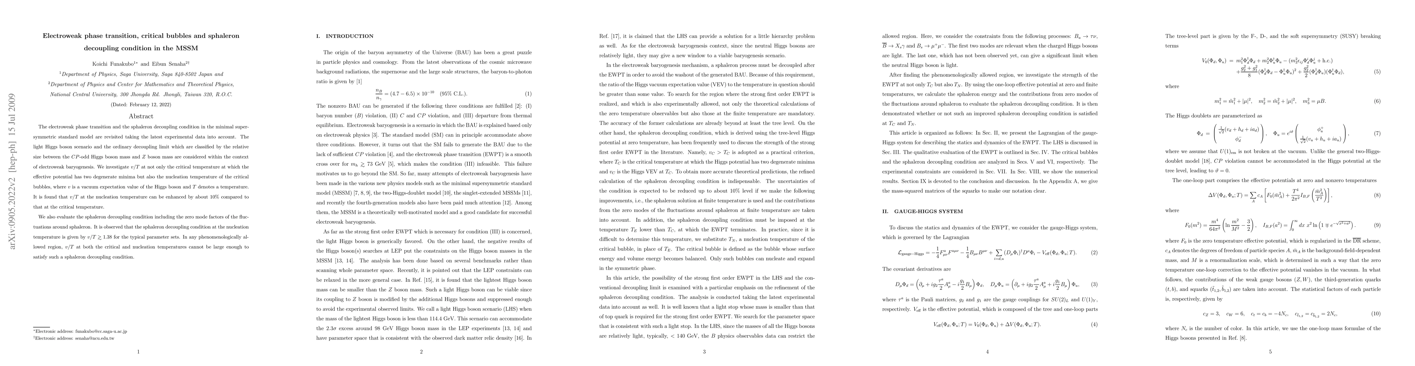 This paper revisits the electroweak phase transition and sphaleron decoupling conditions in the MSSM, finding that v/T at the nucleation temperature can be enhanced by about 10% compared to the critical temperature. The sphaleron decoupling condition at the nucleation temperature requires v/T > 1.38, which is not met in any phenomenologically allowed region.