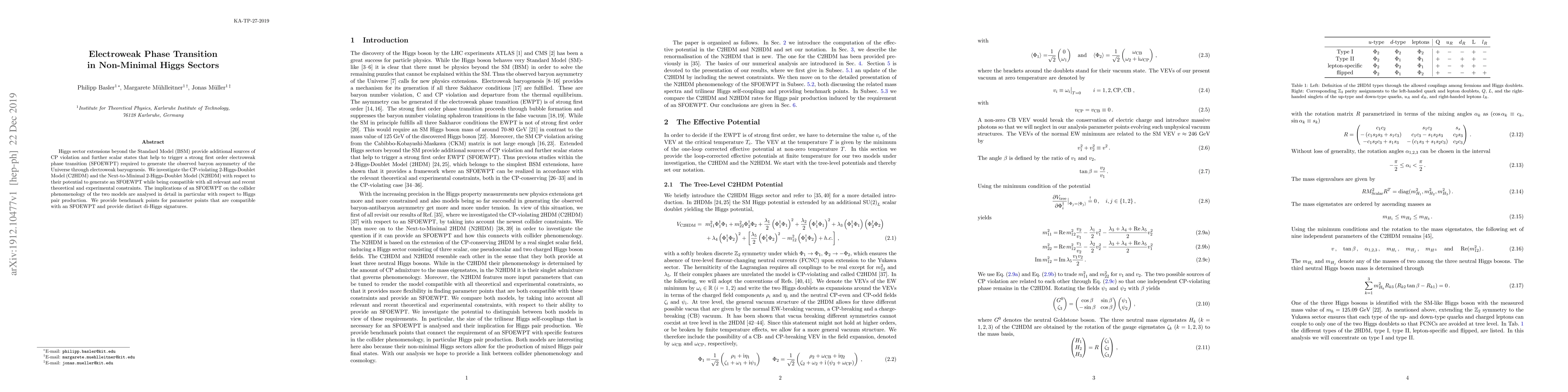 This paper explores how extended Higgs sectors beyond the Standard Model can induce a strong first-order electroweak phase transition (SFOEWPT), essential for generating the observed baryon asymmetry. It examines the CP-violating 2-Higgs-Doublet Model and the Next-to-Minimal 2-Higgs-Doublet Model, providing benchmark points and distinct di-Higgs signatures for SFOEWPT-compatible scenarios.