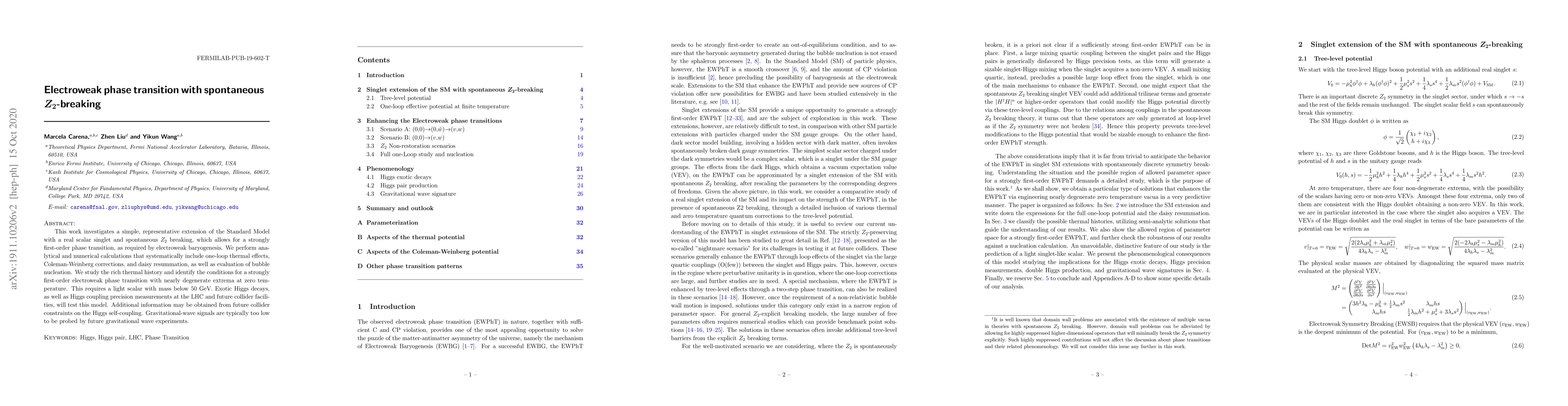 This work investigates a simple, representative extension of the Standard Model with a real scalar singlet and spontaneous $Z_2$ breaking, which allows for a strongly first-order phase transition, as required by electroweak baryogenesis. We perform analytical and numerical calculations that systematically include one-loop thermal effects, Coleman-Weinberg corrections, and daisy resummation, as well as evaluation of bubble nucleation. We study the rich thermal history and identify the conditions for a strongly first-order electroweak phase transition with nearly degenerate extrema at zero temperature. This requires a light scalar with mass below 50 GeV. Exotic Higgs decays, as well as Higgs coupling precision measurements at the LHC and future collider facilities, will test this model. Additional information may be obtained from future collider constraints on the Higgs self-coupling. Gravitational-wave signals are typically too low to be probed by future gravitational wave experiments.