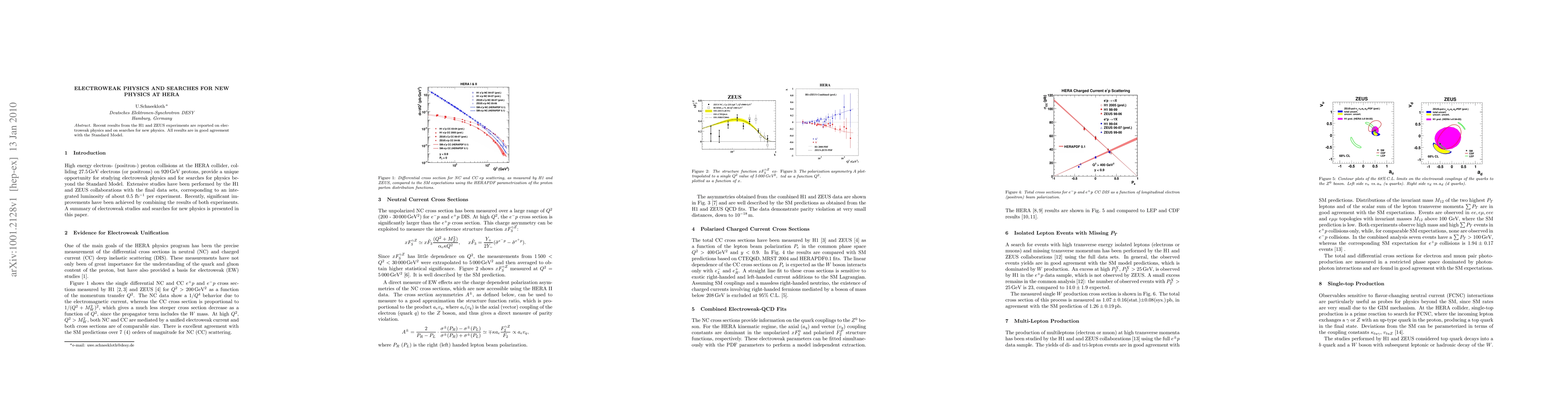 Summary: The H1 and ZEUS experiments at HERA have reported recent findings on electroweak physics and new physics searches, all of which align well with the Standard Model, providing no evidence for new physics beyond the current theoretical framework.