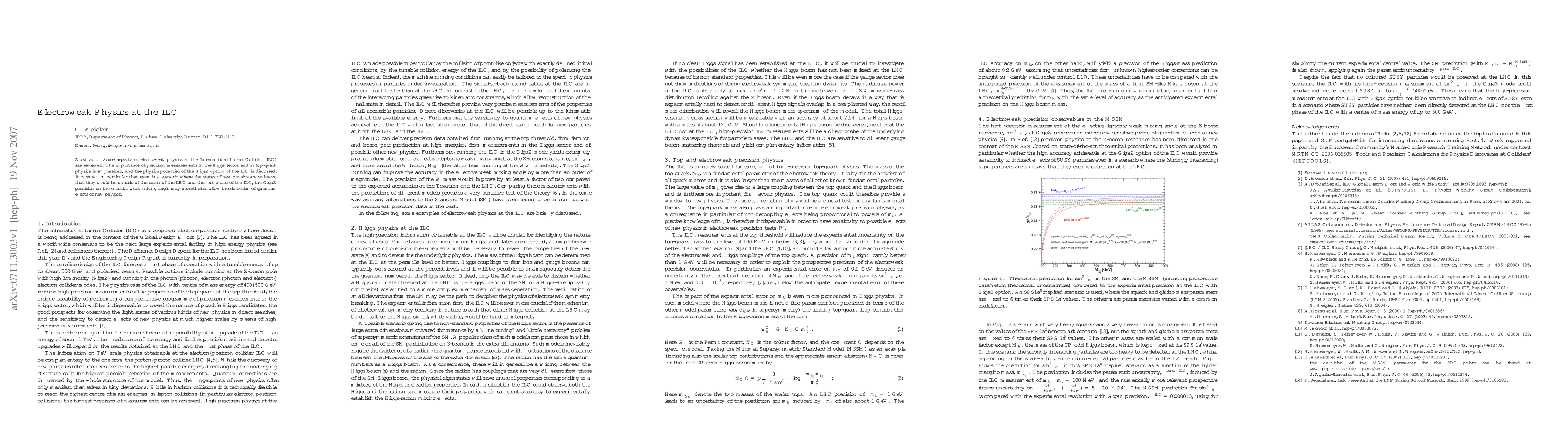 This paper reviews electroweak physics at the International Linear Collider (ILC), emphasizing the importance of precision measurements in the Higgs and top-quark sectors. It highlights the GigaZ option's potential to detect quantum effects of new physics even if new heavy states are beyond the reach of the LHC and early ILC phases.