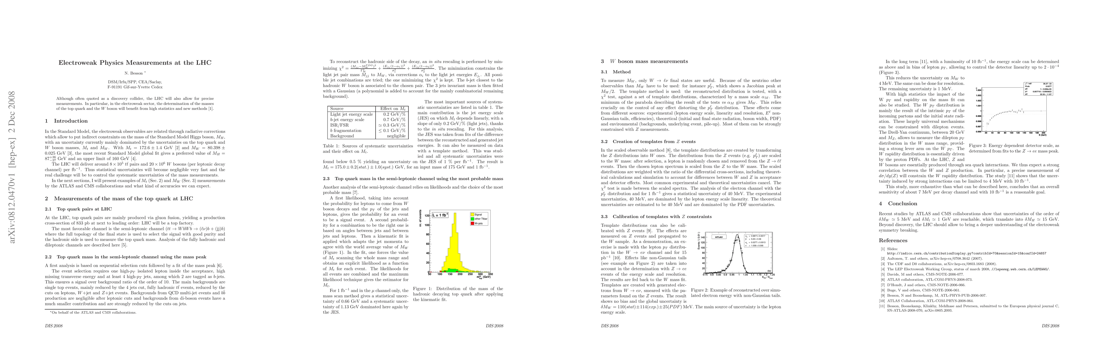 Summary: This paper discusses the LHC's capability to make precise electroweak physics measurements, focusing on the high-statistics determination of the top quark and W boson masses through advanced methodologies.