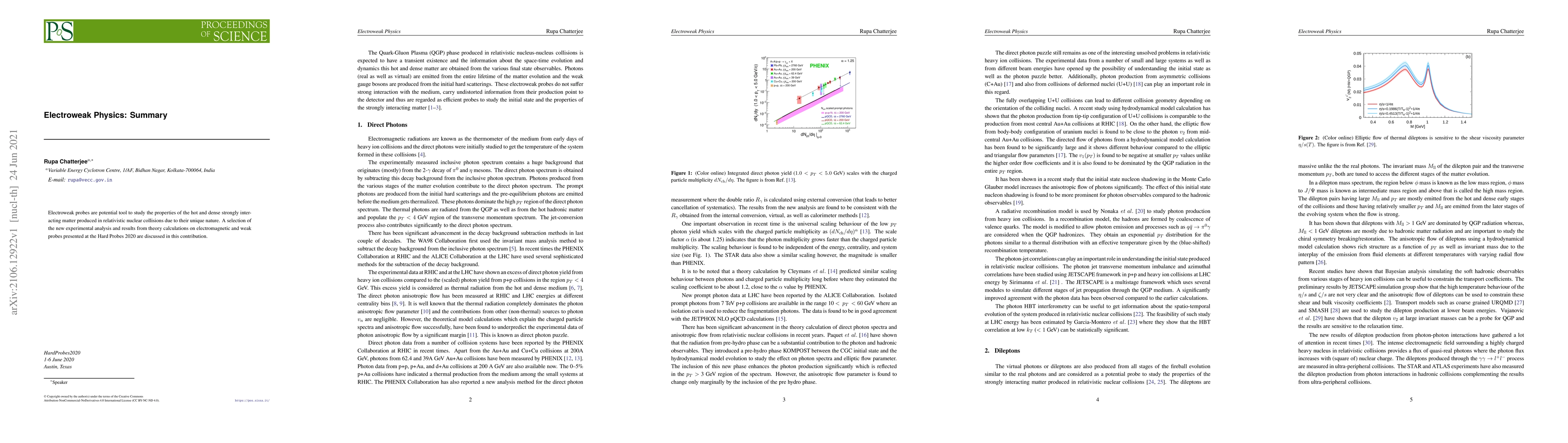 This paper reviews new experimental analyses and theoretical calculations on electroweak probes used to study the properties of hot, dense matter in relativistic nuclear collisions, presented at the Hard Probes 2020 conference. The findings highlight the unique capabilities of these probes in understanding strongly interacting matter.