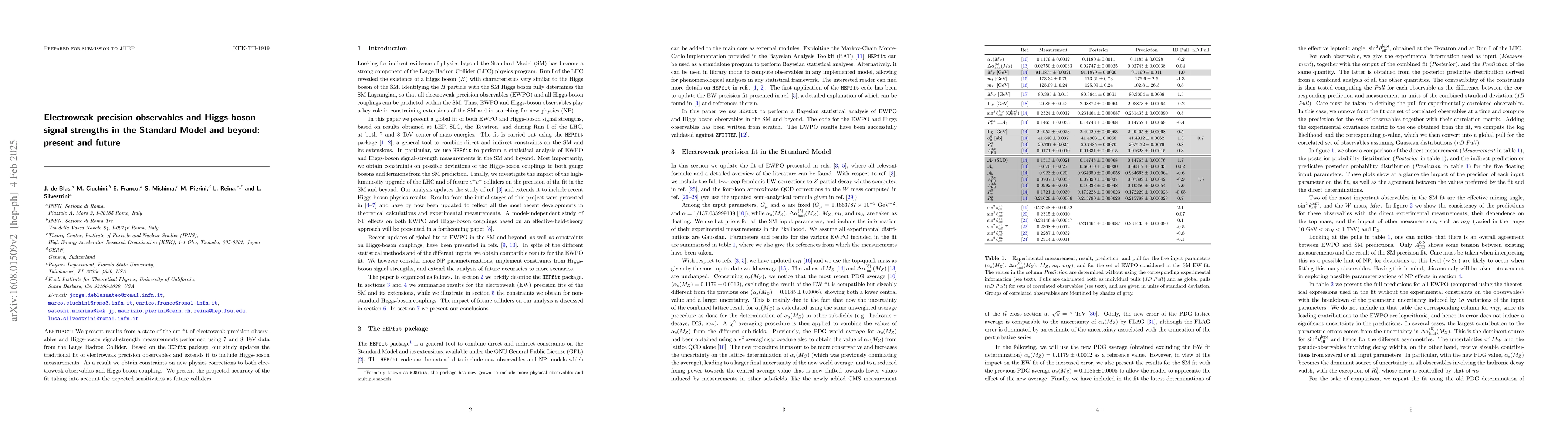 This paper presents an advanced fit of electroweak precision observables and Higgs-boson signal strengths using LHC data, updating traditional methods and incorporating future collider sensitivities. The study provides constraints on new physics corrections to electroweak and Higgs-boson couplings.
