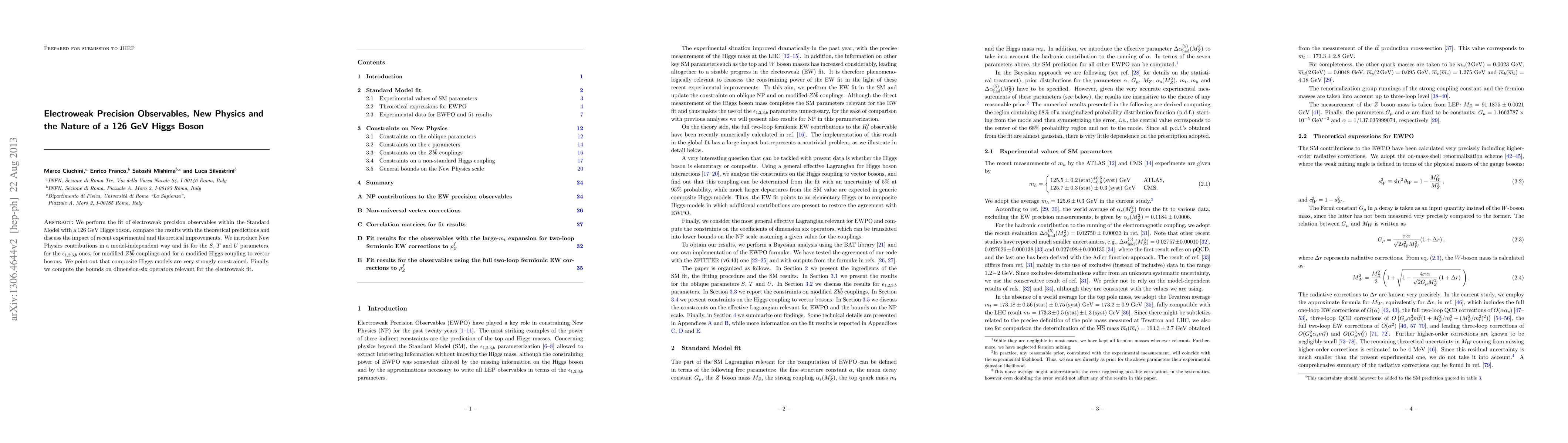 This paper fits electroweak precision observables within the Standard Model with a 126 GeV Higgs boson, comparing results with theoretical predictions and discussing the impact of recent improvements. It also introduces New Physics contributions and fits for various parameters, strongly constraining composite Higgs models and computing bounds on dimension-six operators relevant for the electroweak fit.