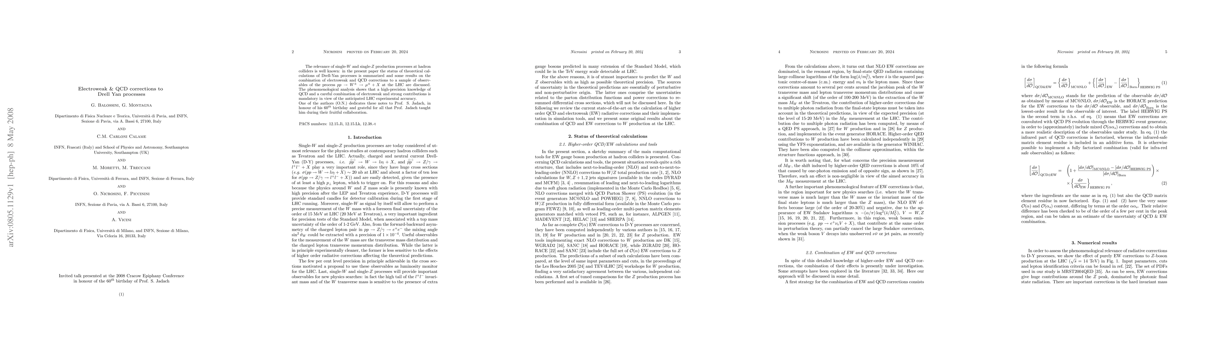 The relevance of single-W and single-Z production processes at hadron colliders is well known: in the present paper the status of theoretical calculations of Drell-Yan processes is summarized and some results on the combination of electroweak and QCD corrections to a sample of observables of the process $p p \to W^\pm \to \mu^\pm + X$ at the LHC are discussed. The phenomenological analysis shows that a high-precision knowledge of QCD and a careful combination of electroweak and strong contributions is mandatory in view of the anticipated LHC experimental accuracy. One of the authors (O.N.) dedicates these notes to Prof. S. Jadach, in honour of his 60th birthday and grateful for all that Prof. Jadach taught him during their fruitful collaboration.