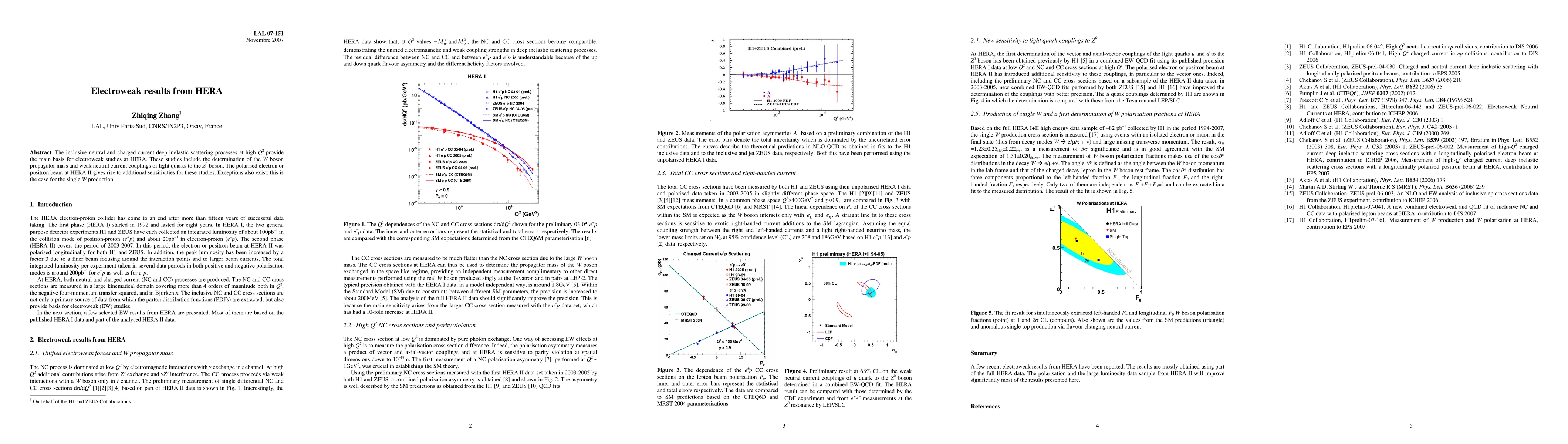 HERA's inclusive neutral and charged current scattering processes were used to study electroweak phenomena, including the W boson mass and weak couplings, with new insights from polarized electron beams.