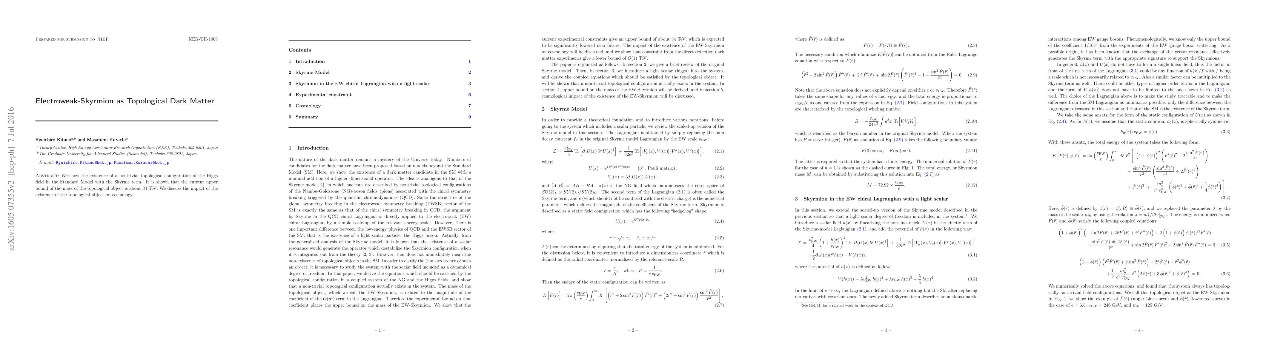 We show the existence of a nontrivial topological configuration of the Higgs field in the Standard Model with the Skyrme term. It is shown that the current upper bound of the mass of the topological object is about 34 TeV. We discuss the impact of the existence of the topological object on cosmology.