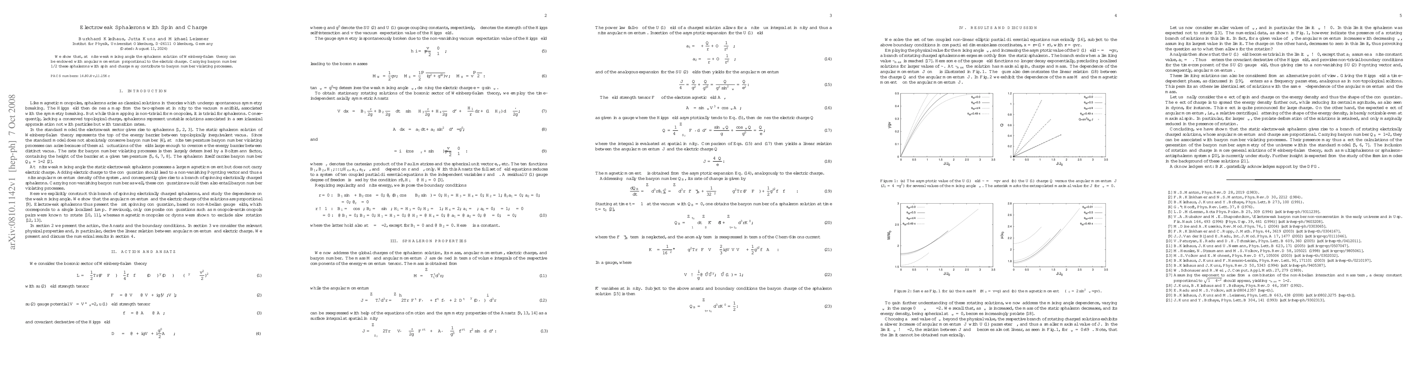 The study demonstrates that certain theoretical particles called sphalerons can possess both spin and electric charge when considering the electroweak theory, potentially affecting processes that violate baryon number. These charged, spinning sphalerons could play a role in phenomena related to matter-antimatter asymmetry in the universe.