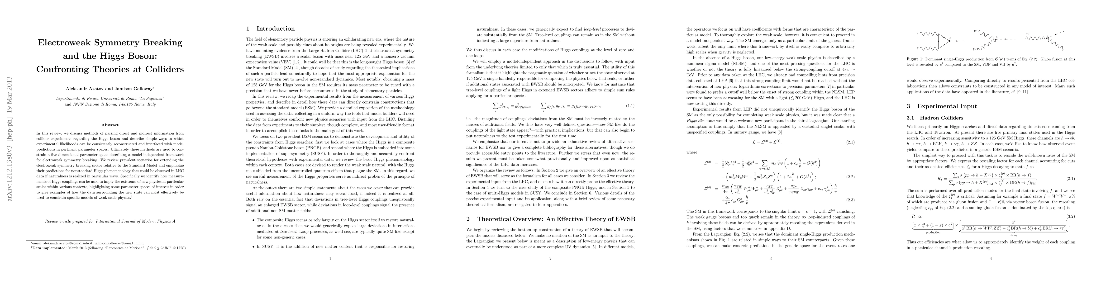 In this review, we discuss methods of parsing direct and indirect information from collider experiments regarding the Higgs boson and describe simple ways in which experimental likelihoods can be consistently reconstructed and interfaced with model predictions in pertinent parameter spaces. Ultimately these methods are used to constrain a five-dimensional parameter space describing a model-independent framework for electroweak symmetry breaking. We review prevalent scenarios for extending the electroweak symmetry breaking sector relative to the Standard Model and emphasize their predictions for nonstandard Higgs phenomenology that could be observed in LHC data if naturalness is realized in particular ways. Specifically we identify how measurements of Higgs couplings can be used to imply the existence of new physics at particular scales within various contexts, highlighting some parameter spaces of interest in order to give examples of how the data surrounding the new state can most effectively be used to constrain specific models of weak scale physics.
