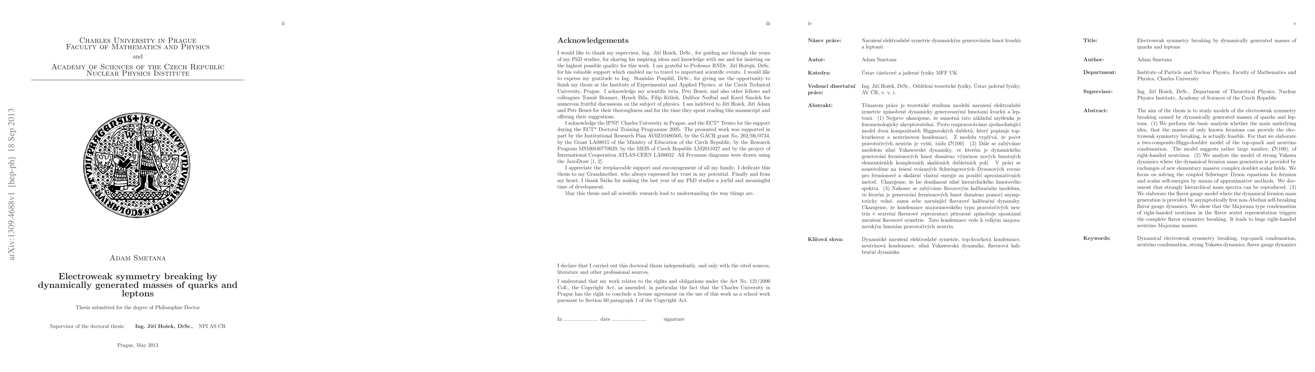 Researchers propose alternative models to electroweak symmetry breaking based on dynamically generated masses of quarks and leptons, suggesting large numbers of right-handed neutrinos and hierarchical mass spectra.