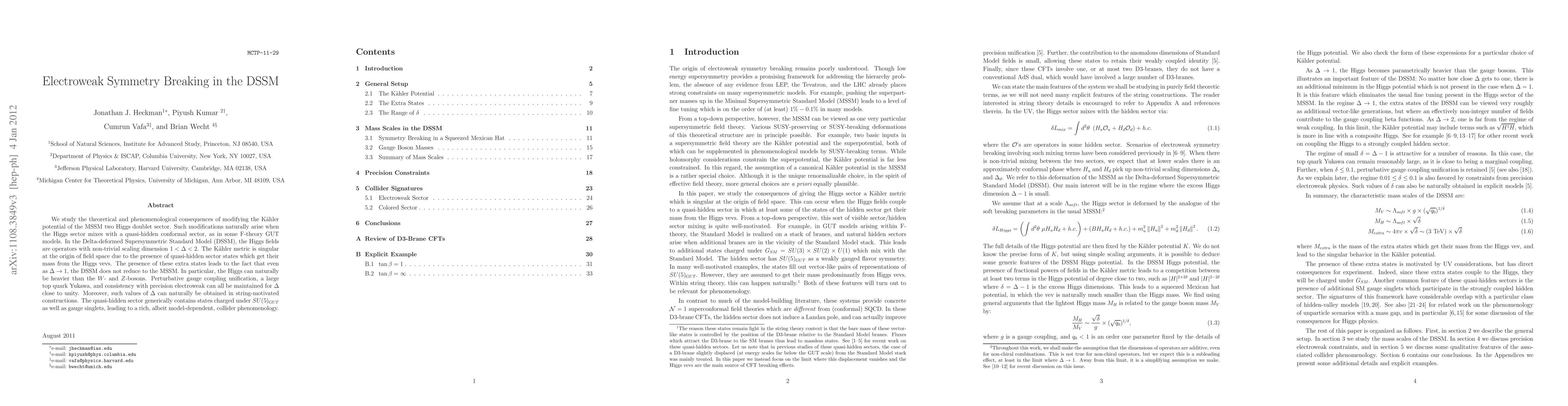 We study the theoretical and phenomenological consequences of modifying the Kahler potential of the MSSM two Higgs doublet sector. Such modifications naturally arise when the Higgs sector mixes with a quasi-hidden conformal sector, as in some F-theory GUT models. In the Delta-deformed Supersymmetric Standard Model (DSSM), the Higgs fields are operators with non-trivial scaling dimension 1 < Delta < 2. The Kahler metric is singular at the origin of field space due to the presence of quasi-hidden sector states which get their mass from the Higgs vevs. The presence of these extra states leads to the fact that even as Delta approaches 1, the DSSM does not reduce to the MSSM. In particular, the Higgs can naturally be heavier than the W- and Z-bosons. Perturbative gauge coupling unification, a large top quark Yukawa, and consistency with precision electroweak can all be maintained for Delta close to unity. Moreover, such values of Delta can naturally be obtained in string-motivated constructions. The quasi-hidden sector generically contains states charged under SU(5)_GUT as well as gauge singlets, leading to a rich, albeit model-dependent, collider phenomenology.