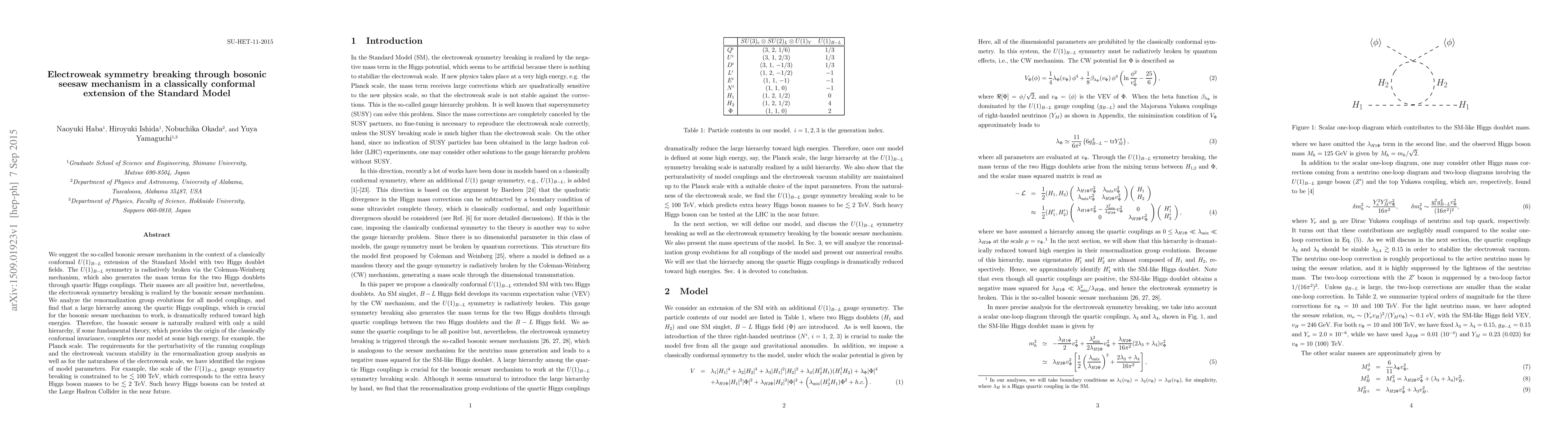 This paper proposes a bosonic seesaw mechanism for electroweak symmetry breaking within a classically conformal $U(1)_{B-L}$ extended Standard Model, where the $U(1)_{B-L}$ symmetry is radiatively broken. The model predicts heavy Higgs bosons with masses up to 2 TeV, testable at the Large Hadron Collider, and suggests that the bosonic seesaw naturally occurs with a mild hierarchy in quartic Higgs couplings if completed at a high energy scale like the Planck scale.