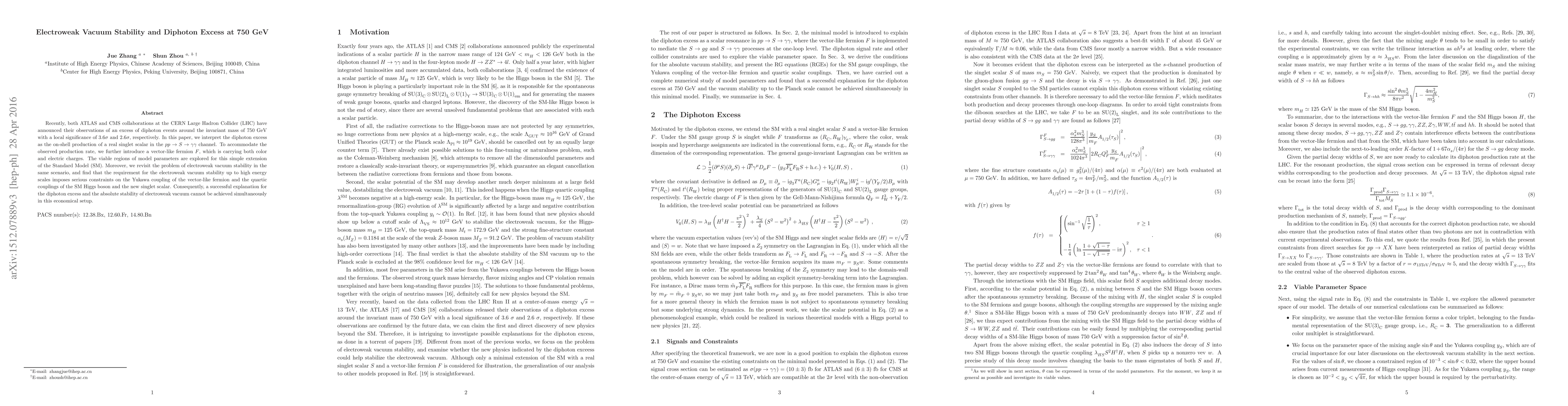 Researchers investigate a possible explanation for the 750 GeV diphoton excess using a Standard Model extension with a real singlet scalar and vector-like fermion, finding that stability of the electroweak vacuum is compromised by this model.