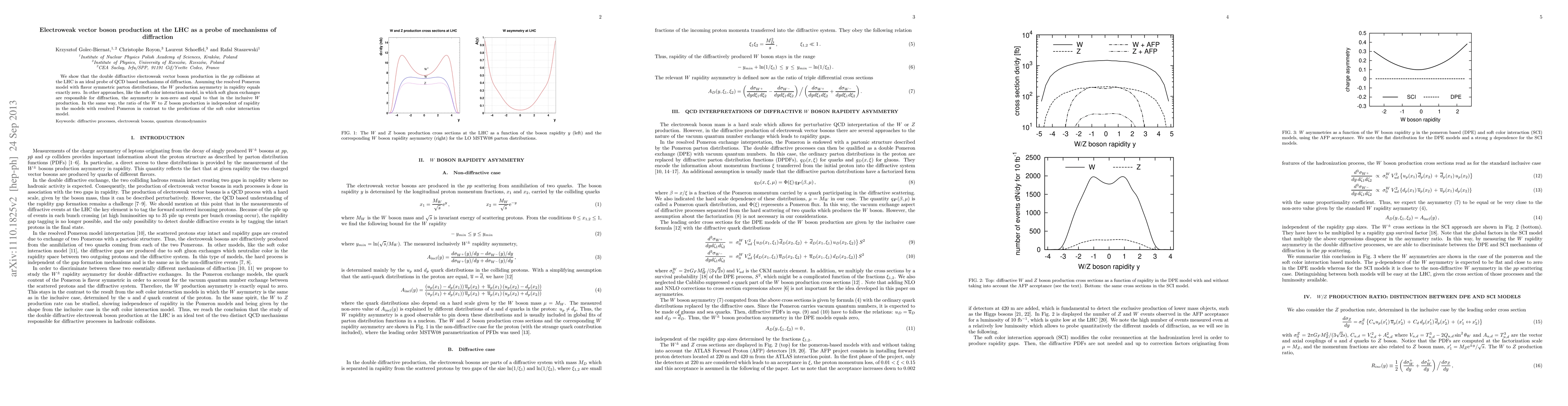 We show that the double diffractive electroweak vector boson production in the $pp$ collisions at the LHC is an ideal probe of QCD based mechanisms of diffraction. Assuming the resolved Pomeron model with flavor symmetric parton distributions, the $W$ production asymmetry in rapidity equals exactly zero. In other approaches, like the soft color interaction model, in which soft gluon exchanges are responsible for diffraction, the asymmetry is non-zero and equal to that in the inclusive $W$ production. In the same way, the ratio of the $W$ to $Z$ boson production is independent of rapidity in the models with resolved Pomeron in contrast to the predictions of the soft color interaction model.
