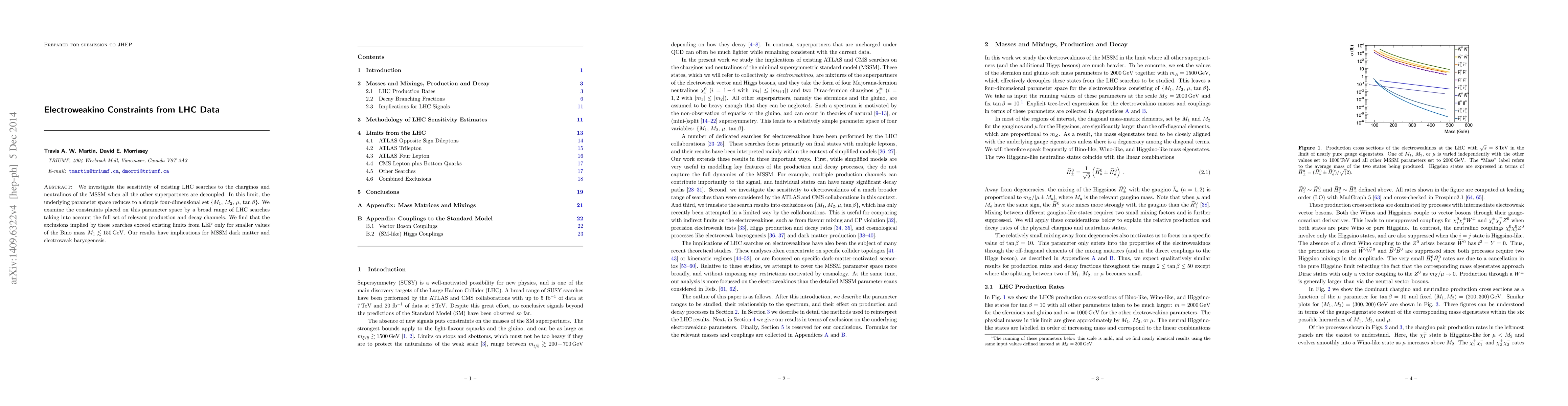 This study analyzes how current LHC data constrains MSSM charginos and neutralinos, considering other superpartners decoupled. The research simplifies the parameter space to {M1, M2, μ, tanβ}, finding LHC exclusions surpass LEP limits only for smaller Bino masses (M1 ≲ 150 GeV). These findings impact MSSM dark matter and electroweak baryogenesis interpretations.