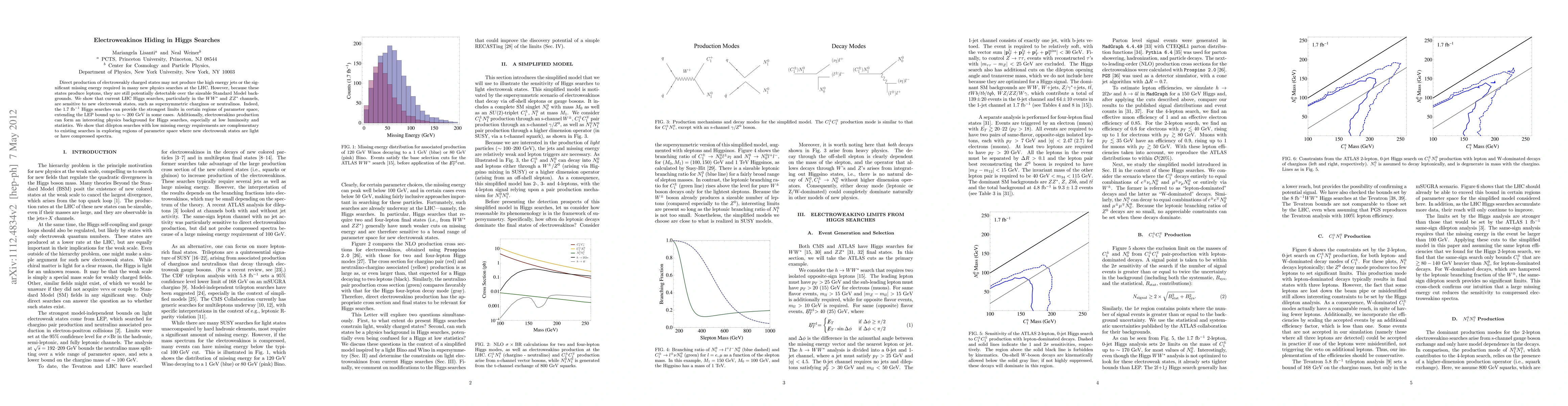 Direct production of electroweakly charged states may not produce the high energy jets or the significant missing energy required in many new physics searches at the LHC. However, because these states produce leptons, they are still potentially detectable over the sizeable Standard Model backgrounds. We show that current LHC Higgs searches, particularly in the WW* and ZZ* channels, are sensitive to new electroweak states, such as supersymmetric charginos or neutralinos. Indeed, the 1.7 fb^{-1} Higgs searches can provide the strongest limits in certain regions of parameter space, extending the LEP bound up to ~200 GeV in some cases. Additionally, electroweakino production can form an interesting physics background for Higgs searches, especially at low luminosity and statistics. We show that dilepton searches with low missing energy requirements are complementary to existing searches in exploring regions of parameter space where new electroweak states are light or have compressed spectra.
