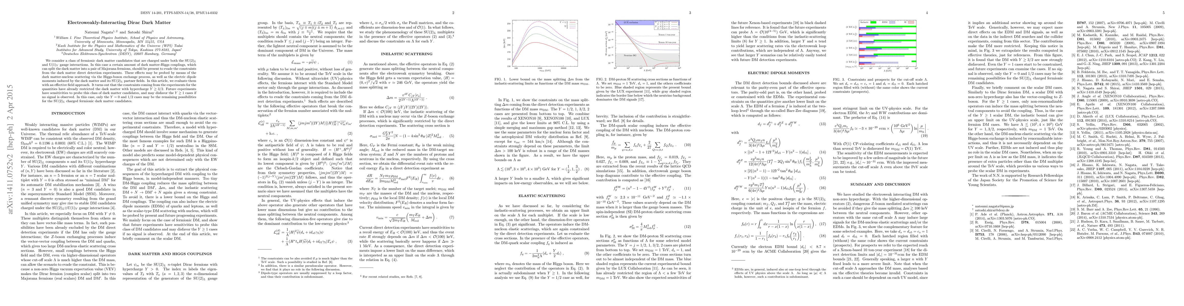 This research explores fermionic dark matter candidates charged under both SU(2)_L and U(1)_Y gauge interactions, finding that direct detection constraints necessitate specific dark matter-Higgs couplings. These couplings can be tested through dark matter-nucleus scattering via Higgs-boson exchange and electric dipole moments, with current experiments restricting hypercharge Y >= 3/2. Future experiments may further constrain Y >= 1 cases, leaving Y = 0 and 1/2 as potential candidates for SU(2)_L charged fermionic dark matter.