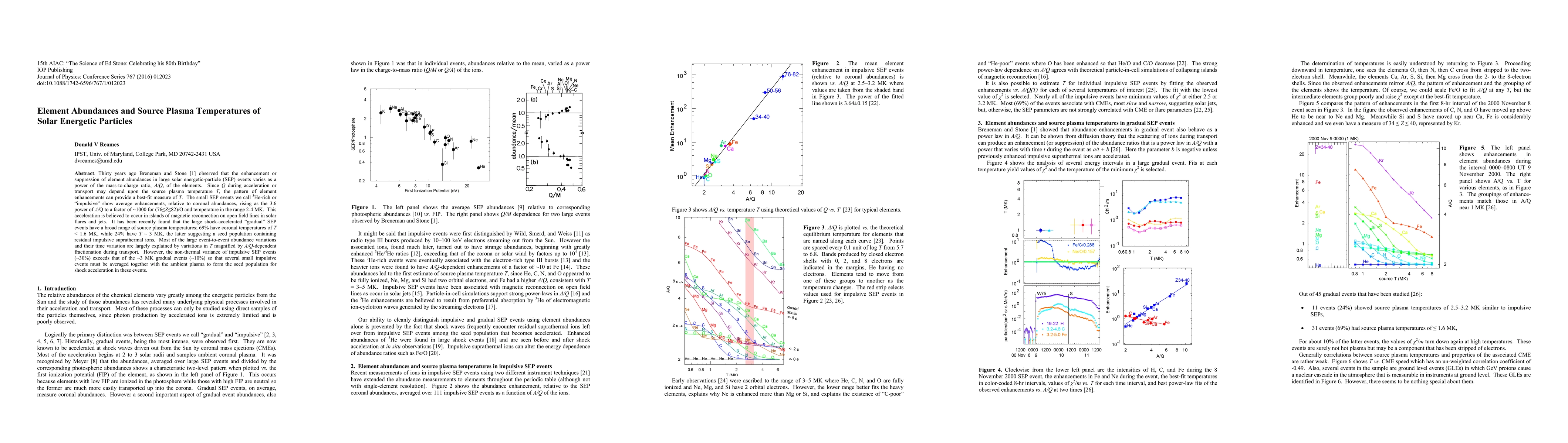 Thirty years ago Breneman and Stone observed that the enhancement or suppression of element abundances in large solar energetic-particle (SEP) events varies as a power of the mass-to-charge ratio, A/Q, of the elements. Since Q during acceleration or transport may depend upon the source plasma temperature T, the pattern of element enhancements can provide a best-fit measure of T. The small SEP events we call 3He-rich or "impulsive" show average enhancements, relative to coronal abundances, rising as the 3.6 power of A/Q to a factor of ~1000 for (76<=Z<=82)/O and temperature in the range 2-4 MK. This acceleration is believed to occur in islands of magnetic reconnection on open field lines in solar flares and jets. It has been recently found that the large shock-accelerated "gradual" SEP events have a broad range of source plasma temperatures; 69% have coronal temperatures of T < 1.6 MK, while 24% have T ~ 3 MK, the latter suggesting a seed population containing residual impulsive suprathermal ions. Most of the large event-to-event abundance variations and their time variation are largely explained by variations in T magnified by A/Q-dependent fractionation during transport. However, the non-thermal variance of impulsive SEP events (~30%) exceeds that of the ~3 MK gradual events (~10%) so that several small impulsive events must be averaged together with the ambient plasma to form the seed population for shock acceleration in these events.