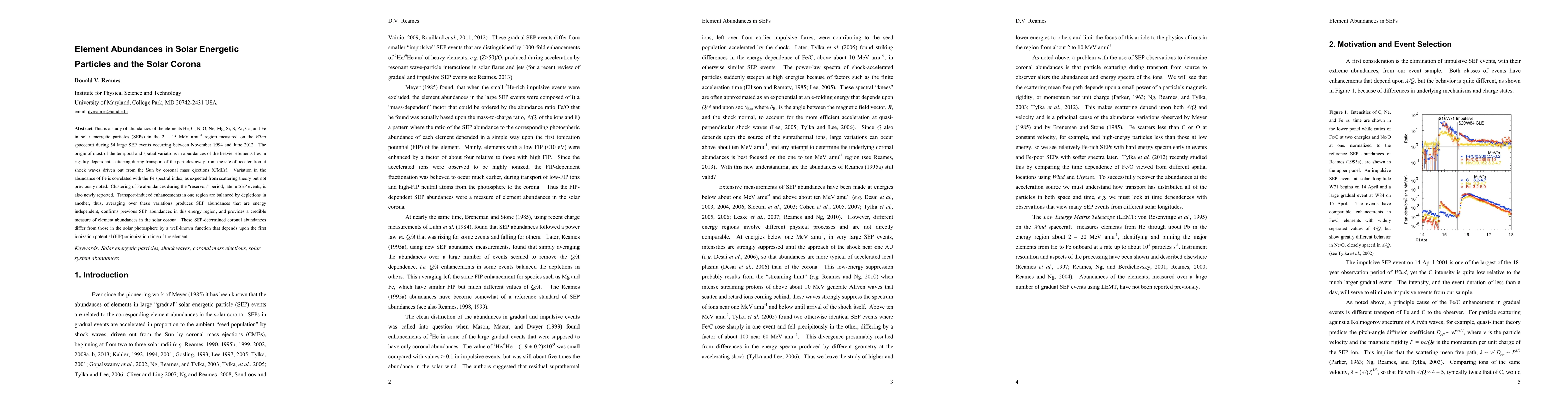 This is a study of abundances of the elements He, C, N, O, Ne, Mg, Si, S, Ar, Ca, and Fe in solar energetic particles (SEPs) in the 2 - 15 MeV amu-1 region measured on the Wind spacecraft during 54 large SEP events occurring between November 1994 and June 2012. The origin of most of the temporal and spatial variations in abundances of the heavier elements lies in rigidity-dependent scattering during transport of the particles away from the site of acceleration at shock waves driven out from the Sun by coronal mass ejections (CMEs). Variation in the abundance of Fe is correlated with the Fe spectral index, as expected from scattering theory but not previously noted. Clustering of Fe abundances during the "reservoir" period, late in SEP events, is also newly reported. Transport-induced enhancements in one region are balanced by depletions in another, thus, averaging over these variations produces SEP abundances that are energy independent, confirms previous SEP abundances in this energy region, and provides a credible measure of element abundances in the solar corona. These SEP-determined coronal abundances differ from those in the solar photosphere by a well-known function that depends upon the first ionization potential (FIP) or ionization time of the element.