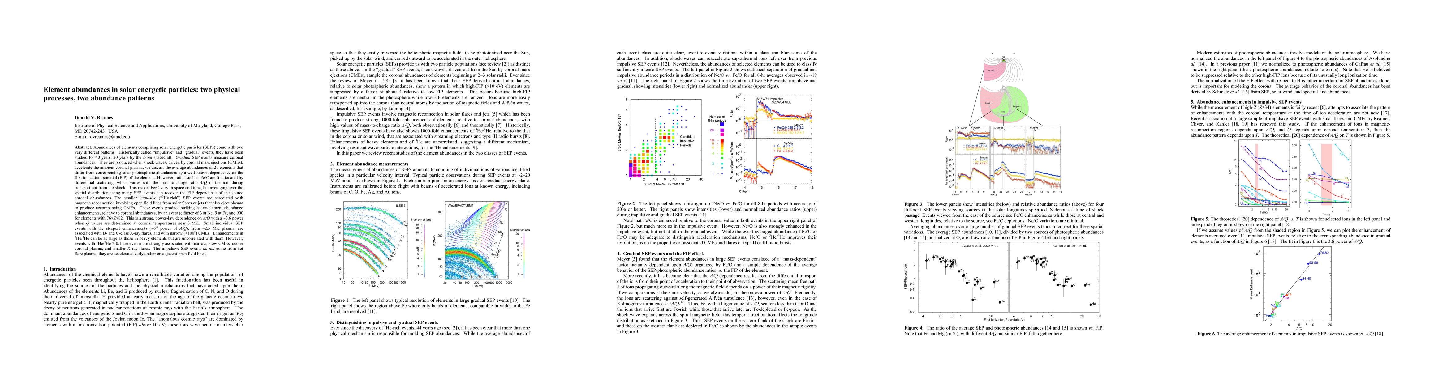 This paper investigates the distinct abundance patterns of elements in solar energetic particles (SEPs) from two different physical processes: gradual SEP events linked to coronal mass ejections and impulsive SEP events associated with magnetic reconnection. Gradual SEPs reflect coronal abundances with a FIP effect, while impulsive SEPs show significant enhancements in heavy elements, particularly for elements with higher atomic numbers, suggesting acceleration on open field lines early in the flare process.