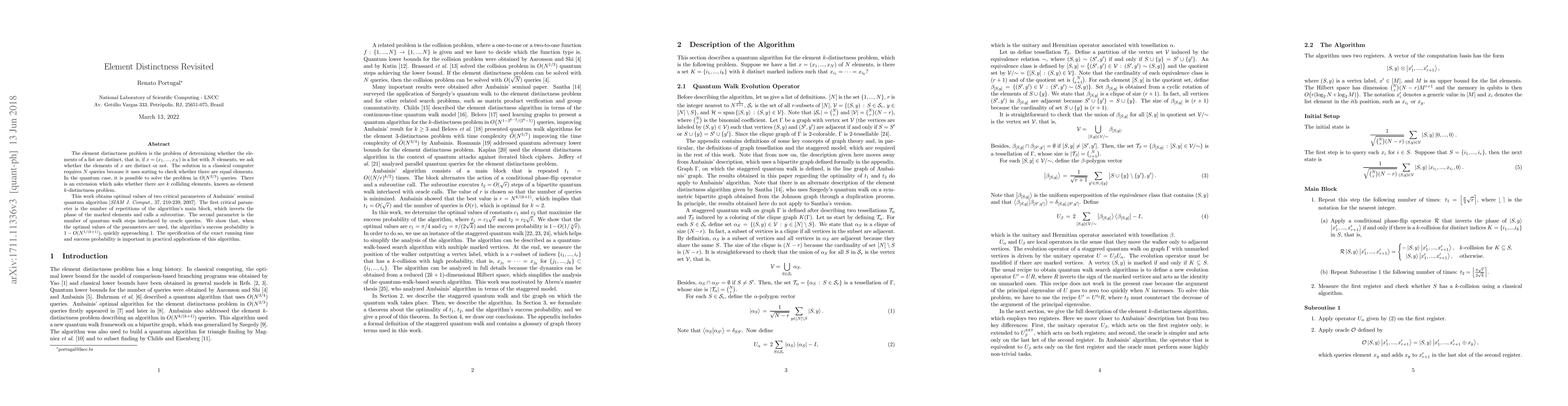 This paper optimizes the parameters of Ambainis' quantum algorithm for solving the element distinctness problem, achieving a success probability of $1-O(N^{1/(k+1)})$ with $O(N^{2/3})$ queries. The optimal values for the algorithm's main block repetitions and quantum walk steps are determined, enhancing its practical applicability.