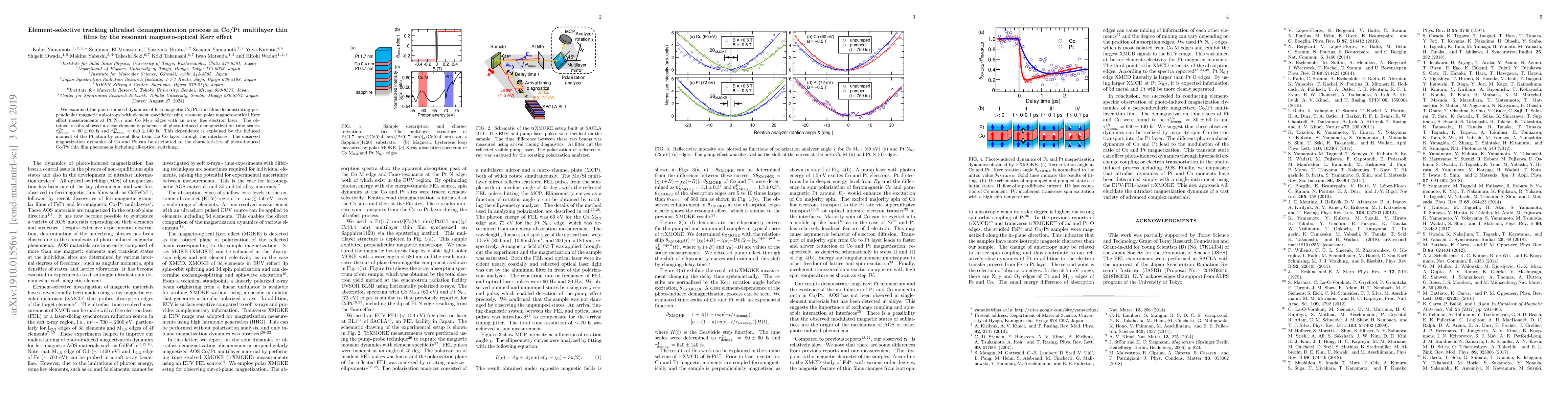 This paper investigates the element-specific ultrafast demagnetization dynamics in Co/Pt multilayer thin films using resonant magneto-optical Kerr effect measurements, revealing distinct demagnetization time scales for Co and Pt, attributed to the current-induced moment of Pt atoms from Co.