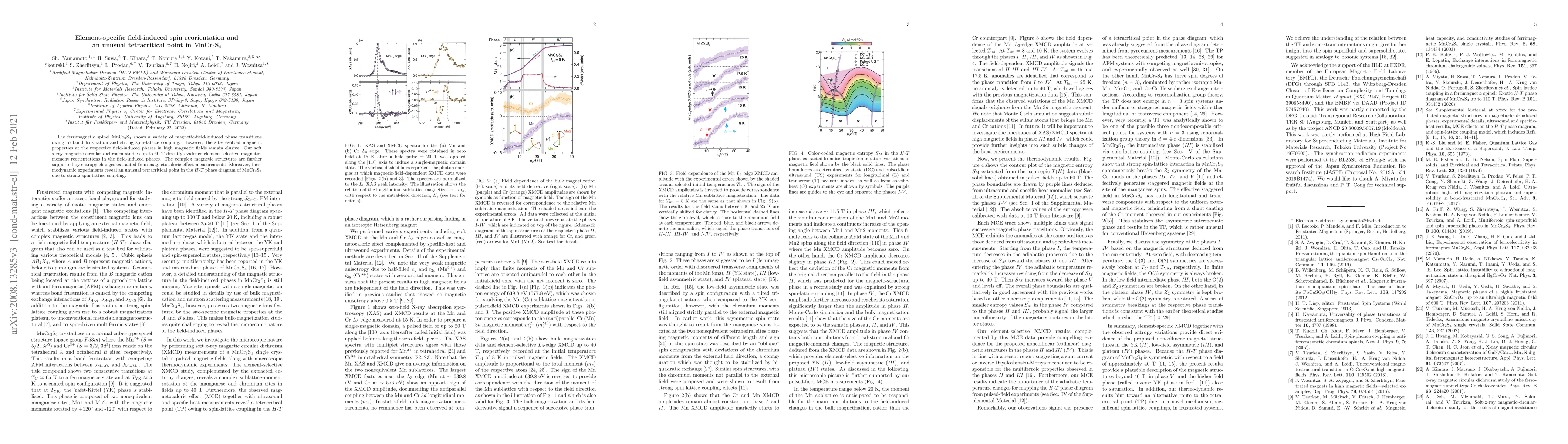 This study uses soft x-ray magnetic circular dichroism to reveal element-specific magnetic-moment reorientations in high magnetic fields of ferrimagnetic spinel MnCr2S4. It also identifies an unusual tetracritical point in its H-T phase diagram, attributed to strong spin-lattice coupling, providing insights into bond frustration and spin-lattice interactions.