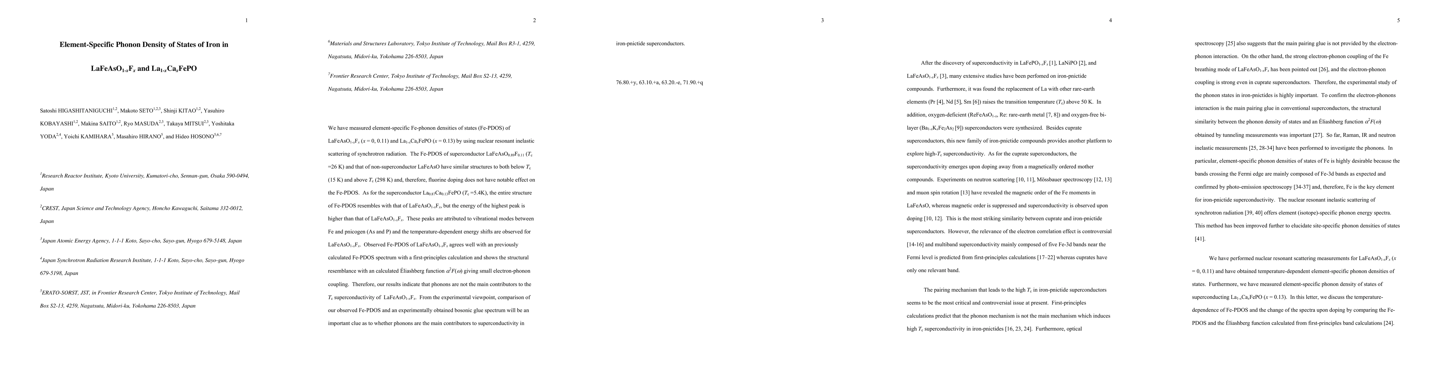 We have measured element-specific Fe-phonon densities of states (Fe-PDOS) of LaFeAsO_{1-x}F_{x} (x = 0, 0.11) and La_{1-x}Ca_{x}FePO (x = 0.13) by using nuclear resonant inelastic scattering of synchrotron radiation. The Fe-PDOS of superconductor LaFeAsO_{0.89}F_{0.11} (Tc = 26 K) and that of non-superconductor LaFeAsO have similar structures to both below Tc (15 K) and above Tc (298 K) and, therefore, fluorine doping does not have notable effect on the Fe-PDOS. As for the superconductor La_{0.87}Ca_{0.13}FePO (Tc = 5.4K), the entire structure of Fe-PDOS resembles with that of LaFeAsO_{1-x}F_{x}, but the energy of the highest peak is higher than that of LaFeAsO_{1-x}F_{x}. These peaks are attributed to vibrational modes between Fe and pnicogen (As and P) and the temperature-dependent energy shifts are observed for LaFeAsO_{1-x}F_{x}. Observed Fe-PDOS of LaFeAsO_{1-x}F_{x} agrees well with an previously calculated Fe-PDOS spectrum with a first-principles calculation and shows the structural resemblance with an calculated Eliashberg function #alpha^2F(x) giving small electron-phonon coupling. Therefore, our results indicate that phonons are not the main contributors to the Tc superconductivity of LaFeAsO_{1-x}F_{x}. From the experimental viewpoint, comparison of our observed Fe-PDOS and an experimentally obtained bosonic glue spectrum will be an important clue as to whether phonons are the main contributors to superconductivity in iron-pnictide superconductors.